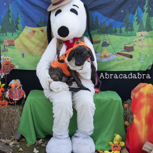 Abracadabra is a typical 5 month old puppy - chaotic, adorable, and curious about everything. With her soft, brindle coat, this beautiful girl is a delight to pet and cuddle with. She's currently being fostered with her brother, Open Sesame, and the two love to play with each other and the resident dogs. Abracadabra is very sweet and is a kissing fiend - who doesn't want to start their day with a cuddle and kiss?! She is still working on potty training, so the work will need to continue in her forever home. Fortunately, she's shown herself to be as smart as she is sweet, and the remainder of her training should be easy as Abracadabra loves treats. Like many older puppies, she is in the process of teething, so everything is a fun chew toy (your fingers, the stair bannister, the occasional toy). She is cat, dog, and kid friendly, and does well sleeping in her crate overnight. Because of her age we don't recommend crating her for long periods of the day. However, her perfect home will be understanding of this precious time in her life, as she's sure to be a wonderful companion as an adult. If you'd like to bring some magic into your life, apply to adopt Abracadabra today!