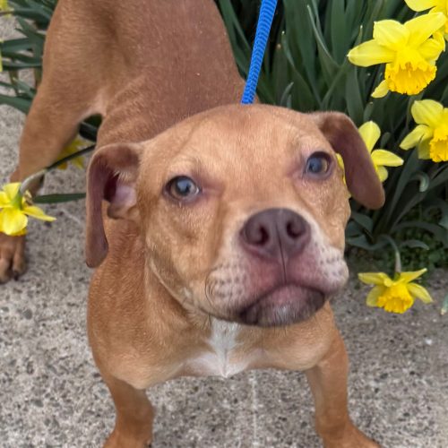 AL is a handsome 6-month-old red-coated boy with a heart just as warm as his coloring. This sweet, neutered pup is already showing what an incredible companion he’s going to be. He’s dog-friendly and enjoys the company of other pups, happily joining in playtime or simply sharing space with a wagging tail and gentle curiosity.