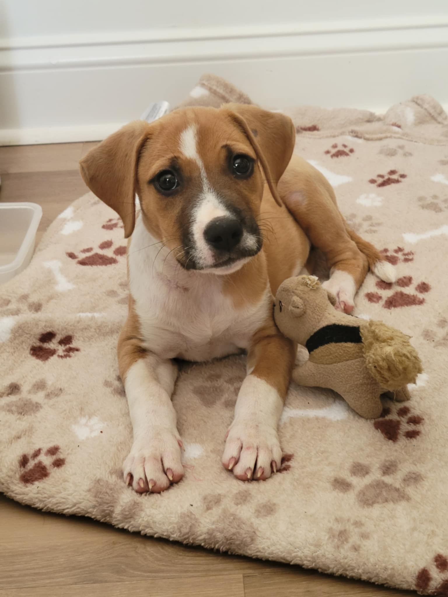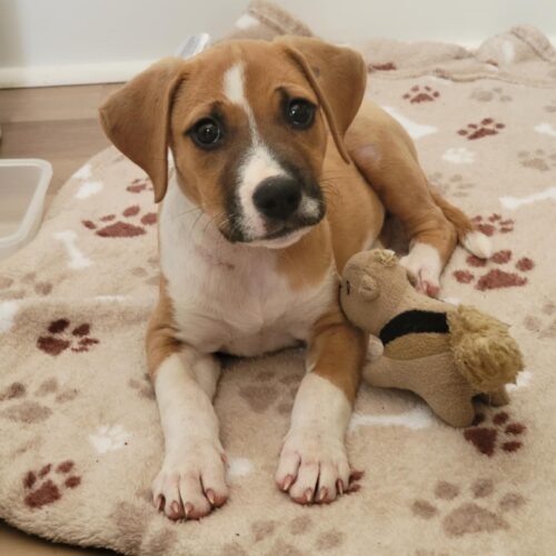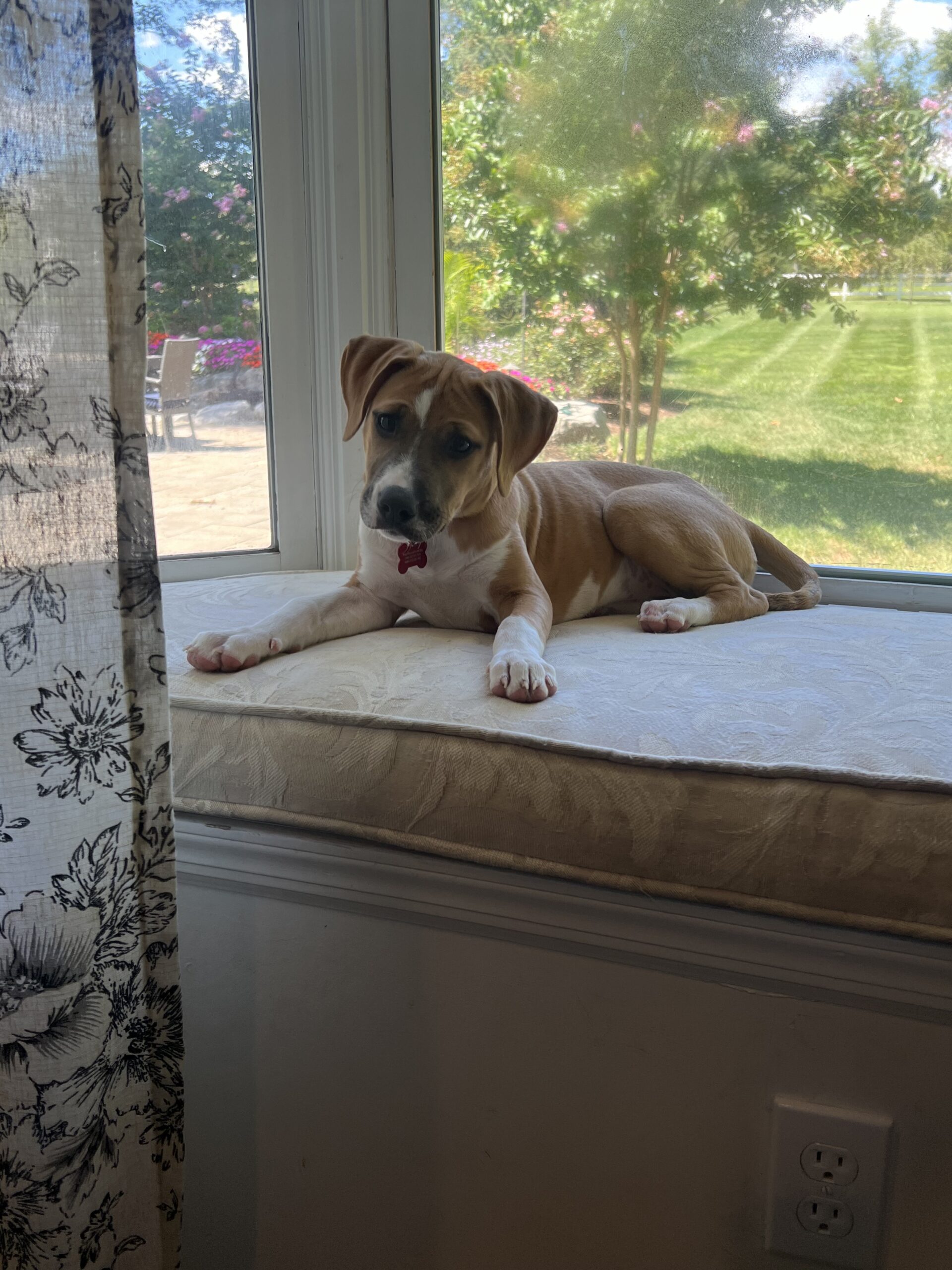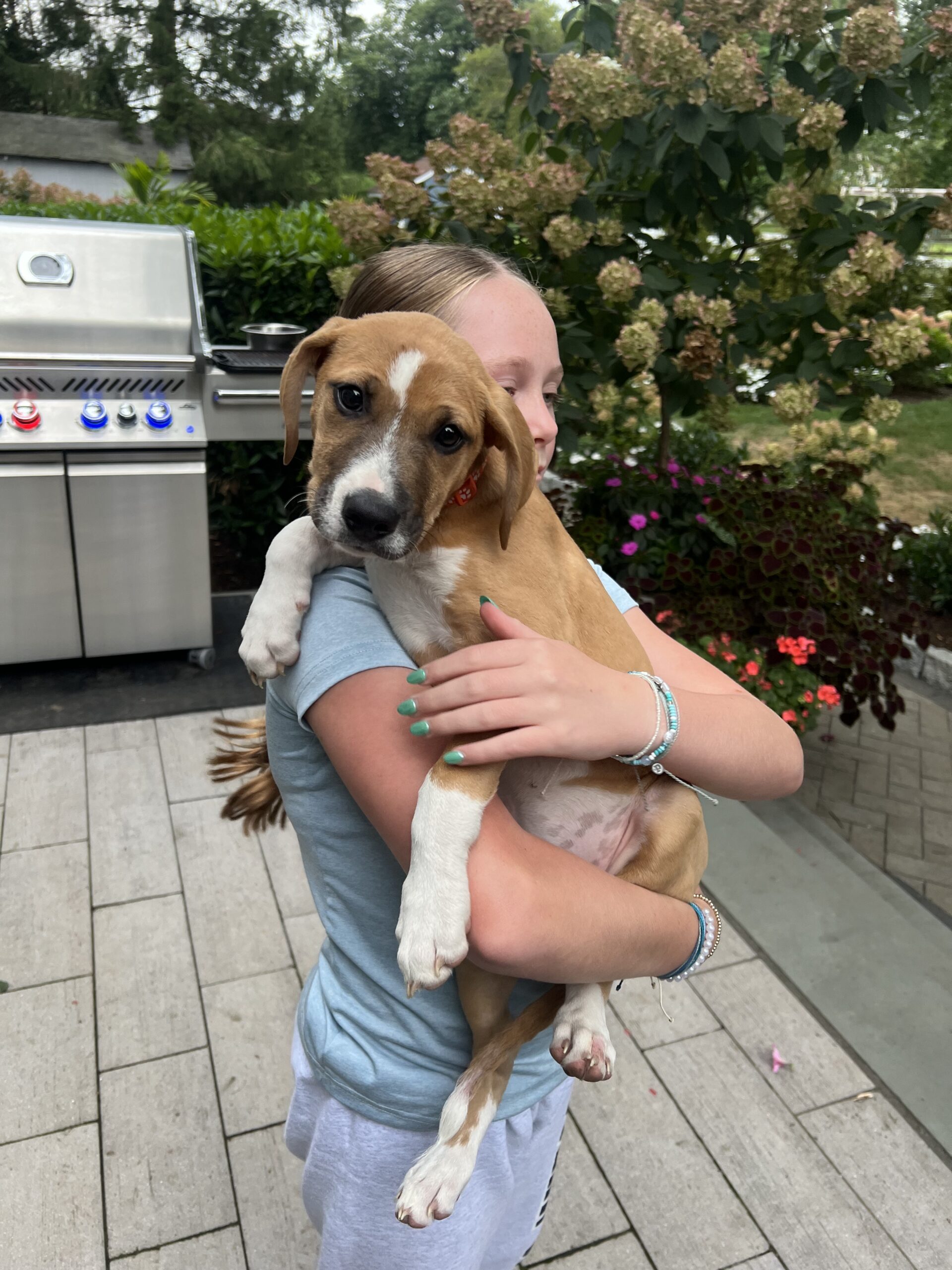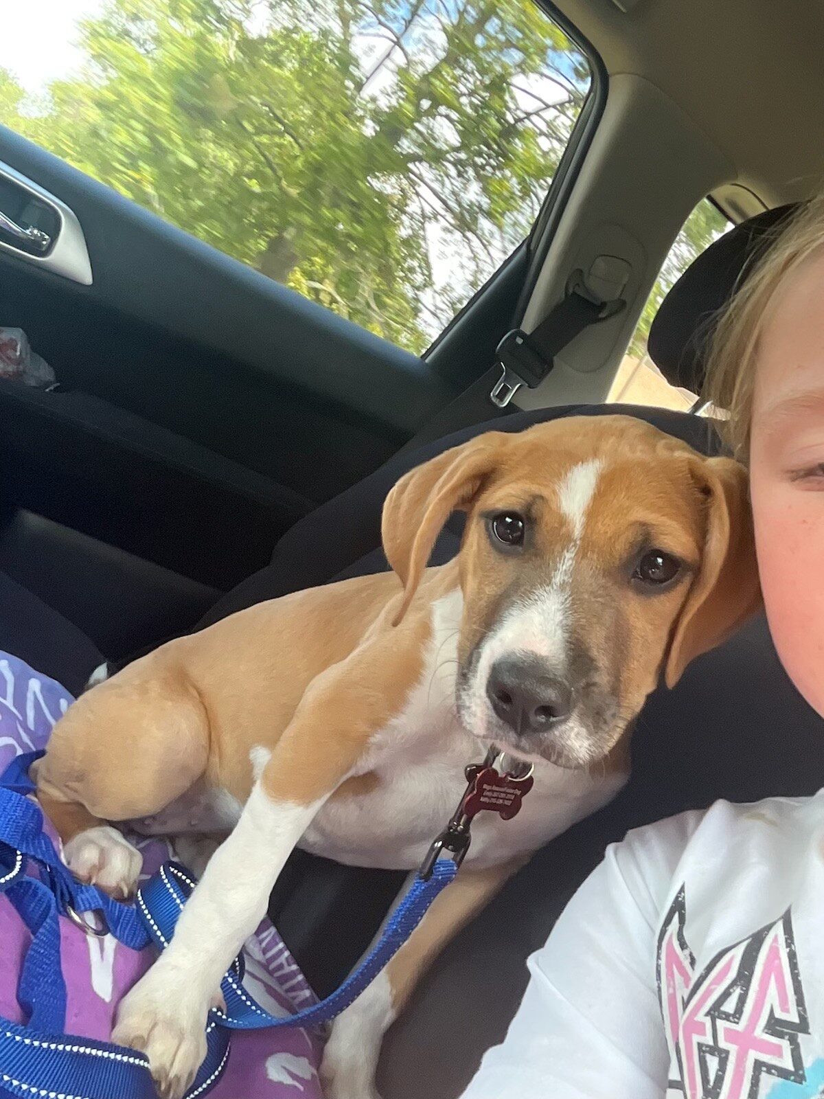 Hi! My name is Ally Mae. I am about 14 weeks old and 15lbs. I am the sweetest, snuggliest puppy. I would do great in a home with children because I am so gentle and love to be held. I am crate trained and even enjoy going into my crate on my own for a nap. I sleep soundly through the night in my crate. I'm also doing amazing with house training for my age. I am a little shy at first when meeting new dogs but once I warm up, I can hold my own with wrestling with much bigger dogs. I had a rough start at life as I was left in a box at a construction site but I am still so loving and I know my forever family is out there!