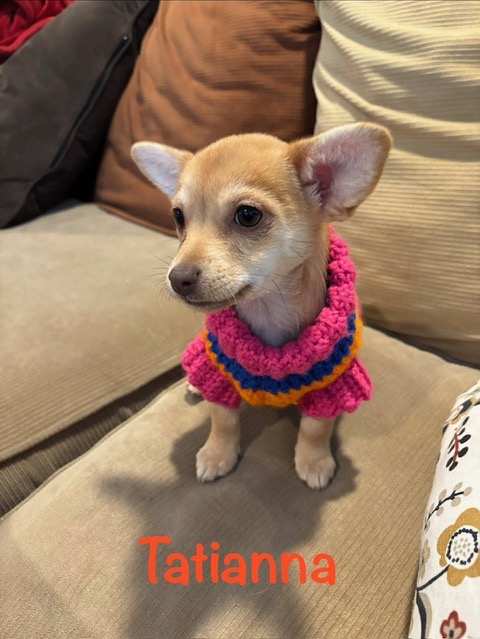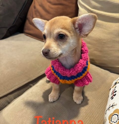 Tatianna is a precious Chihuahua mix puppy with a lighter coat than her sisters, making her stand out just as much as her gentle personality. She's a tiny sweetheart who loves cuddles, playful moments, and being close to her sisters and her foster people. Tatiana is ready to trade puppy kisses for a forever home full of love.