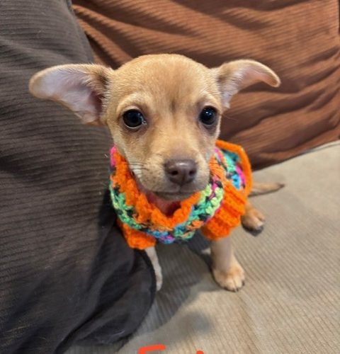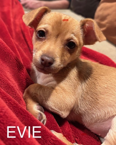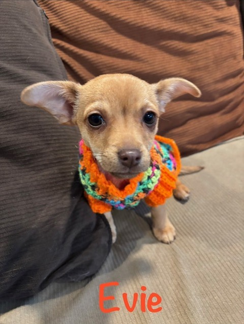 Evie is and adorable Chihuahua mix and is the shy girl of the group, but don't let that fool you-she is full of love. Evie thrives on cuddles and feels safest tucked into your arms or nestle right beside you. Evie is the perfect pup for someone who appreciates affection and snuggles.
