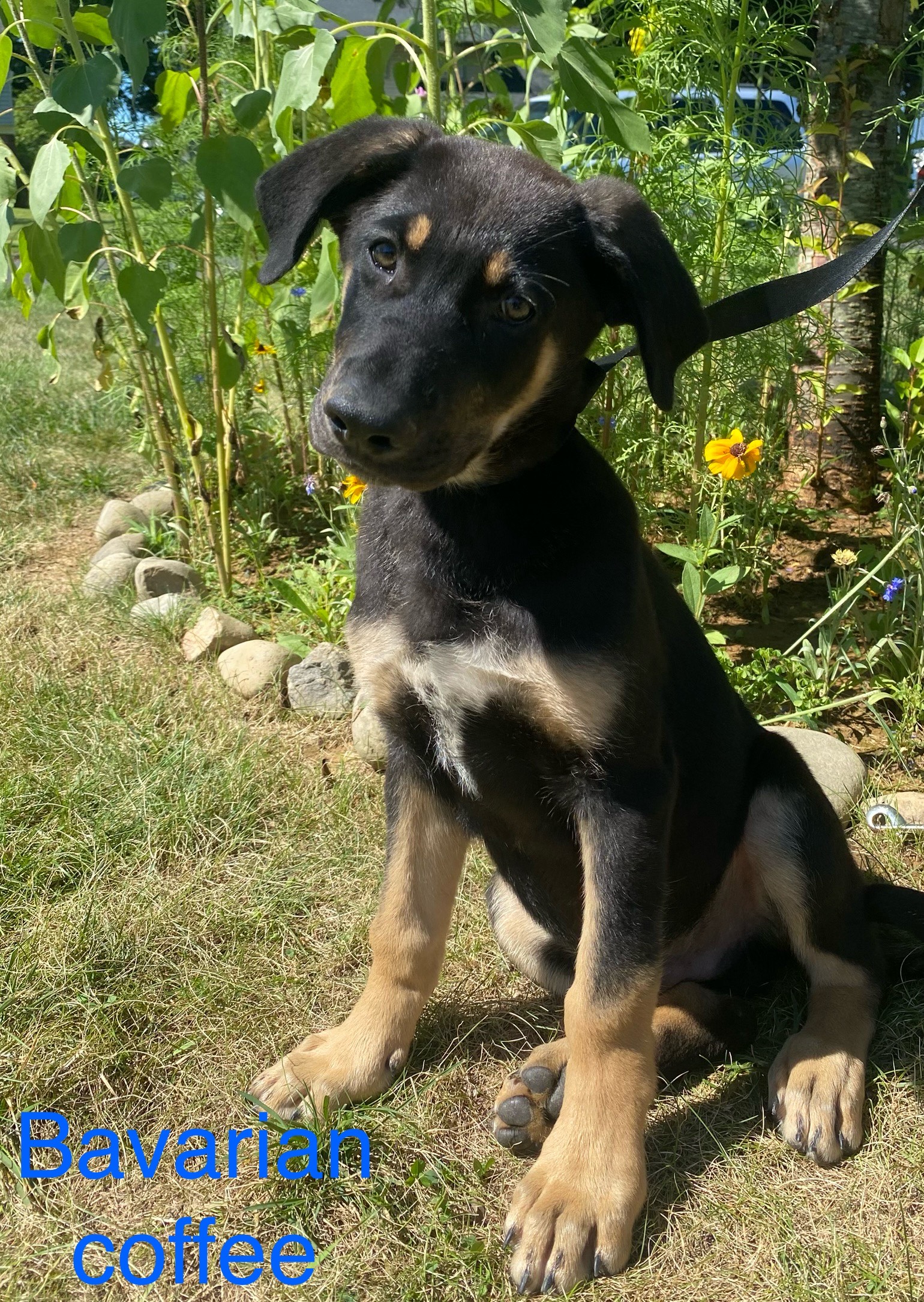Originally from West Virginia, this little guy was exposed to parvo early on, but he’s a true fighter and has come through with flying colors. Now he’s healthy, happy, and growing like a weed! At his core, Bavarian Coffee has that classic shepherd spirit—loyal, intelligent, sensitive, and deeply loving. He forms strong bonds with his people and adores being part of the action (especially if it includes snuggles or playtime).