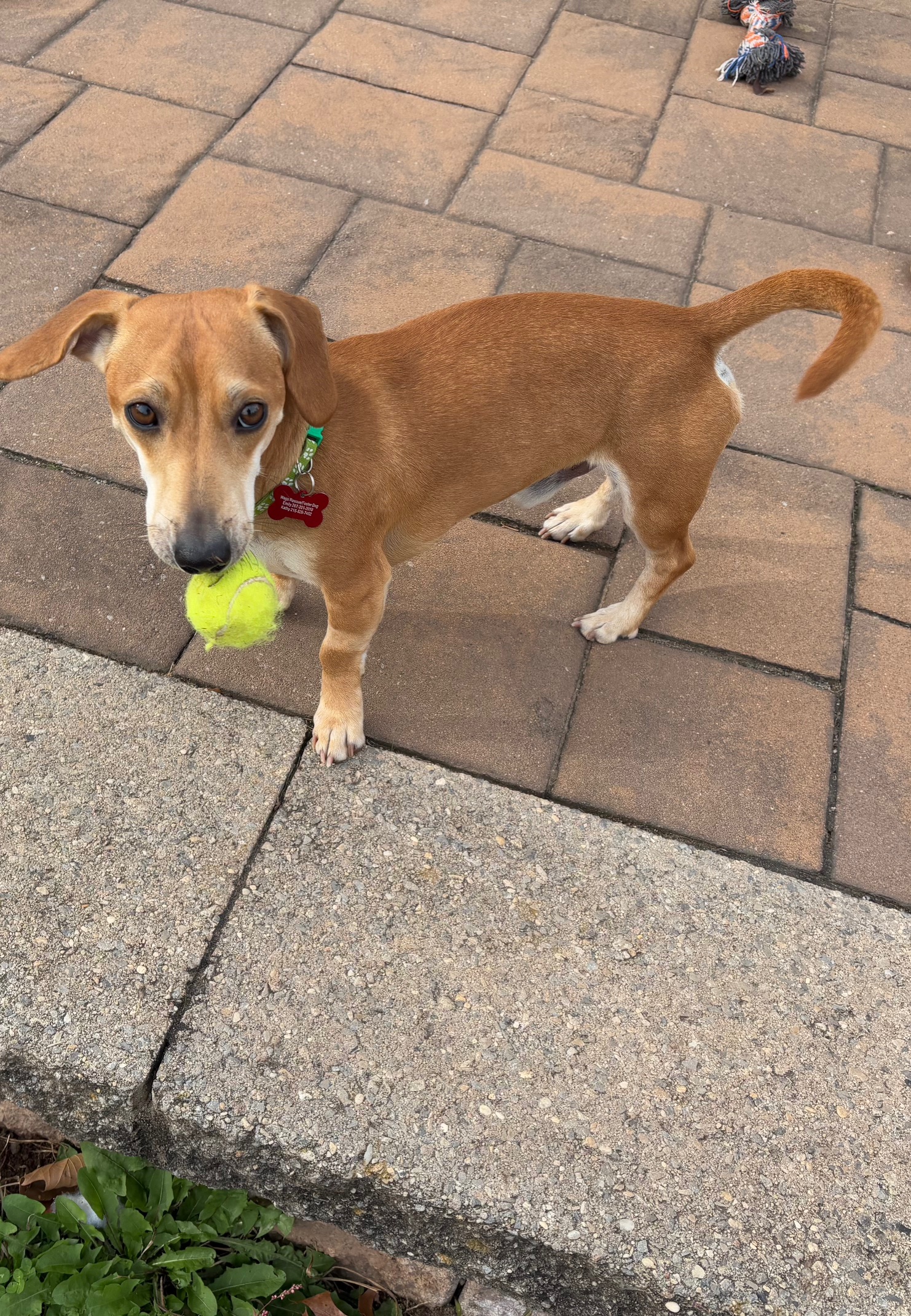 Bratwurst is truly the total package — he's friendly, affectionate, and great with everyone he meets. He loves kids, gets along wonderfully with other dogs, and is even cat-approved! Whether he's playing with his friends or greeting new people with his signature tail wag, Bratwurst's cheerful personality shines everywhere he goes.