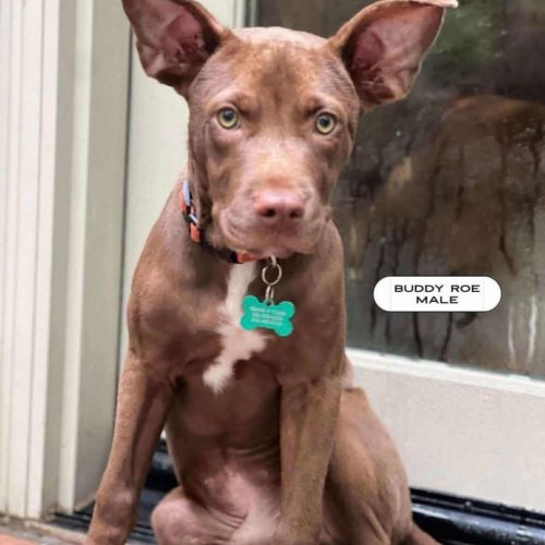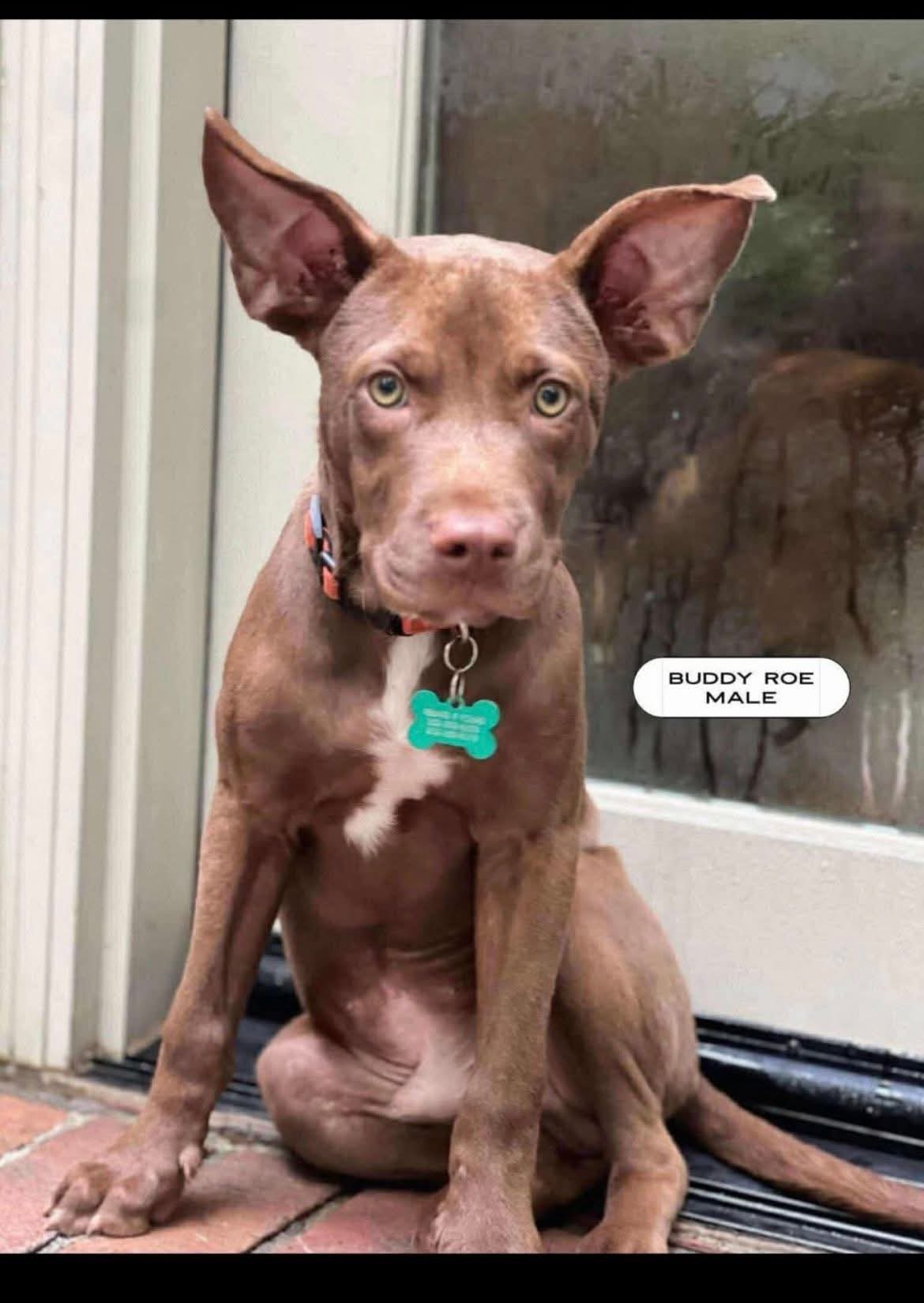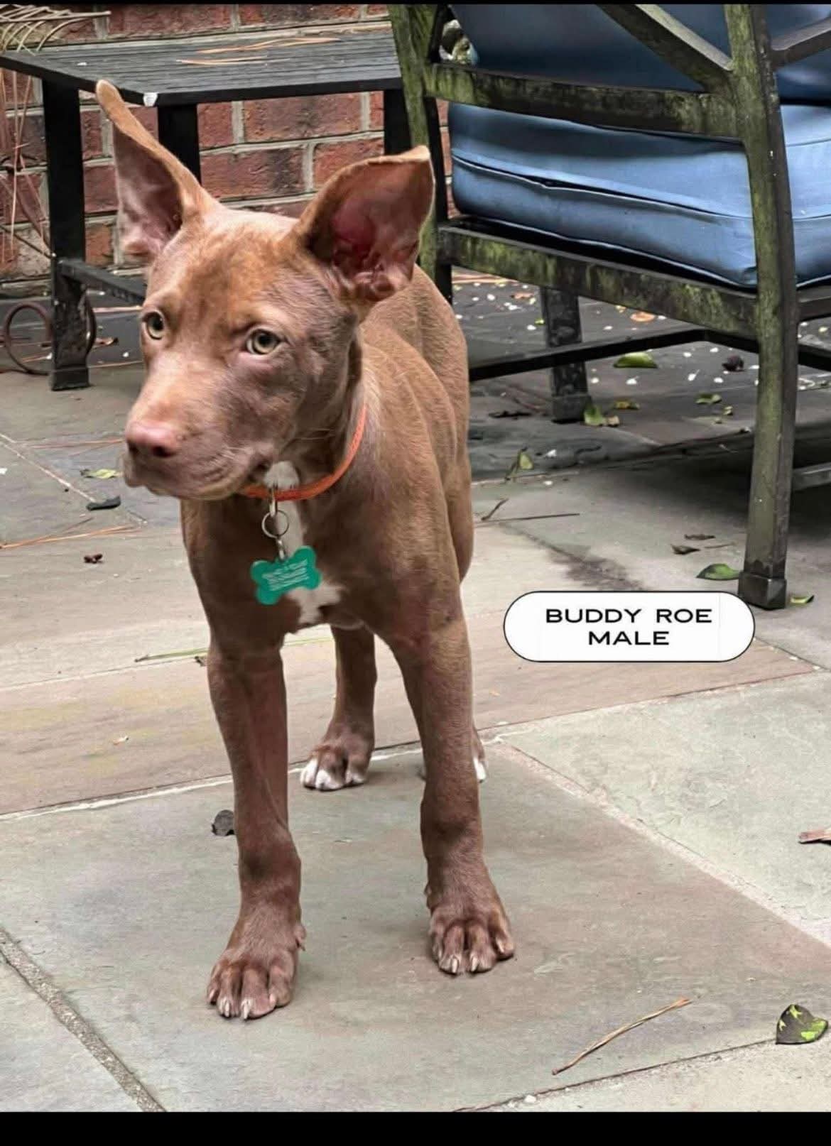 Meet Buddy Roe-- this guy obviously had a rough start so now is cautious to trust humans. He finds his full "dog" potential when with another confident playful, guiding four-legged pal. He is FAST when moving outside and skiddish with quick movement from humans. With that being said, he would be a better fit for a home with older children. Buddy is treat and food motivated. He walks behind his human when on a lead.
