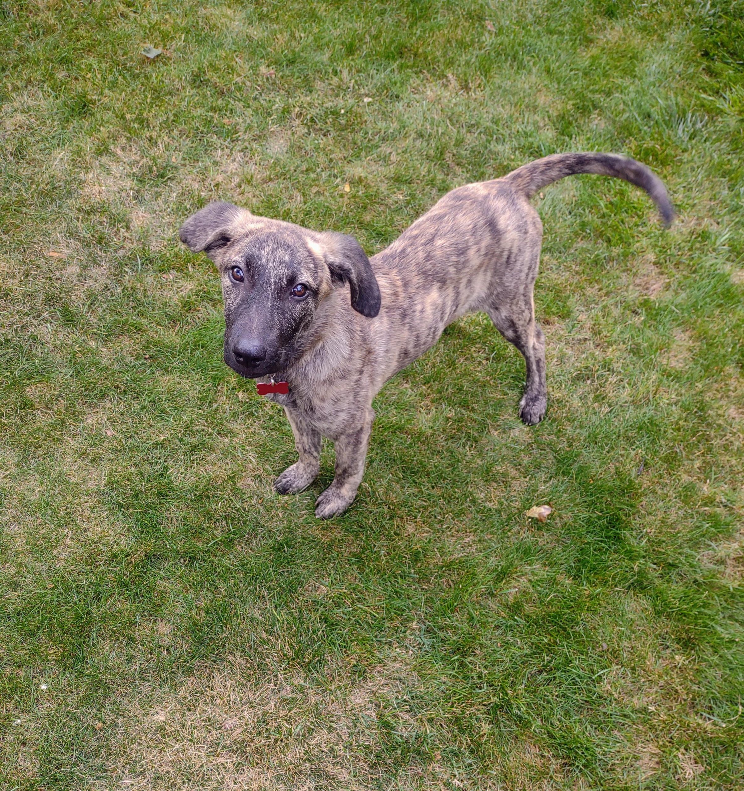 20 lbs. and I have some growing left to do. I should tell you that I have one ear which is smaller than the other, but don't worry because it doesn't bother me at all. Some say that it makes me even cuter. I love to play with my doggie foster sister and I'm enjoying playing with toys too. I'm still young, so I'm learning about lots of things. My foster family says that I'm doing well with my housetraining, crate training, and walking on a leash. I'm very treat motivated, so that helps with my progress. If you would like to add a cute, playful four-legged friend to your life, reach to my friends at wagsrescue.org