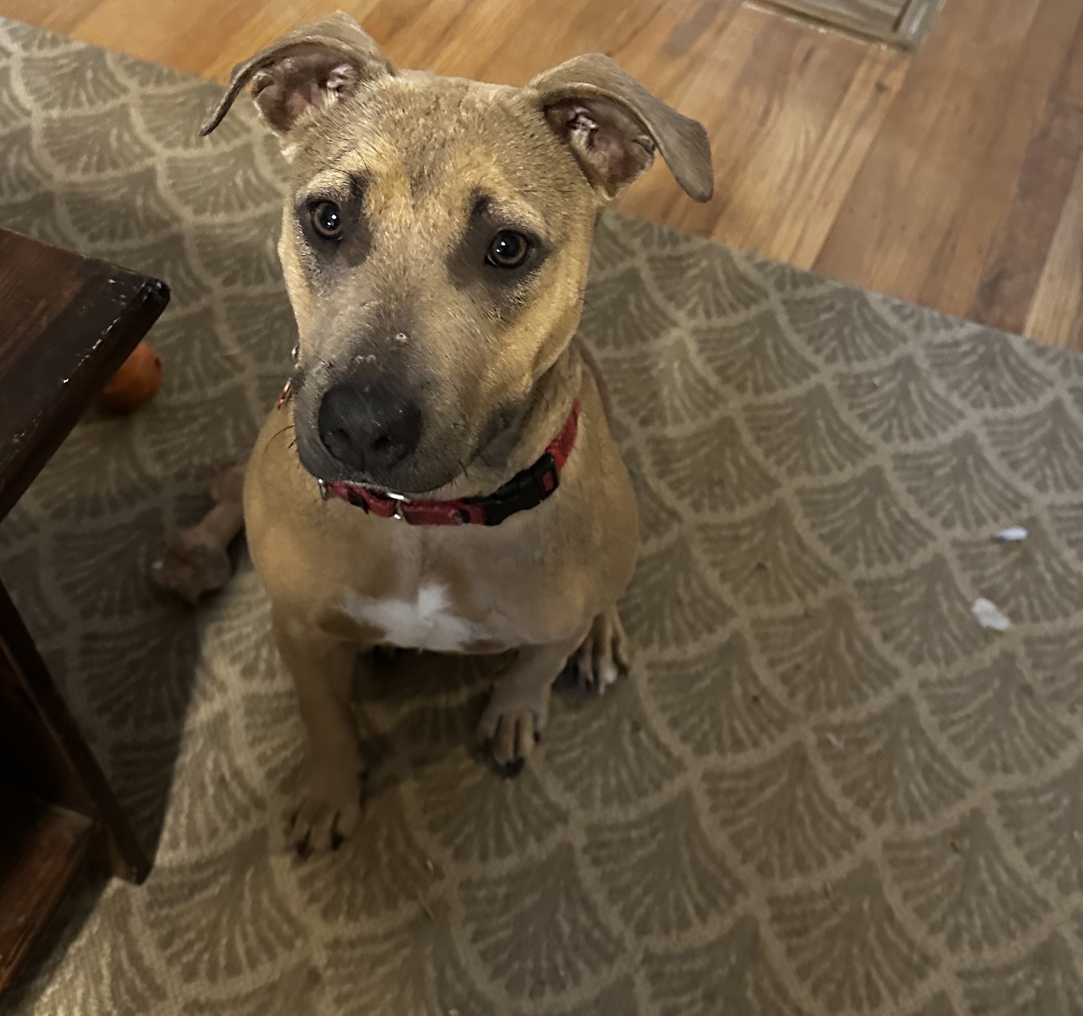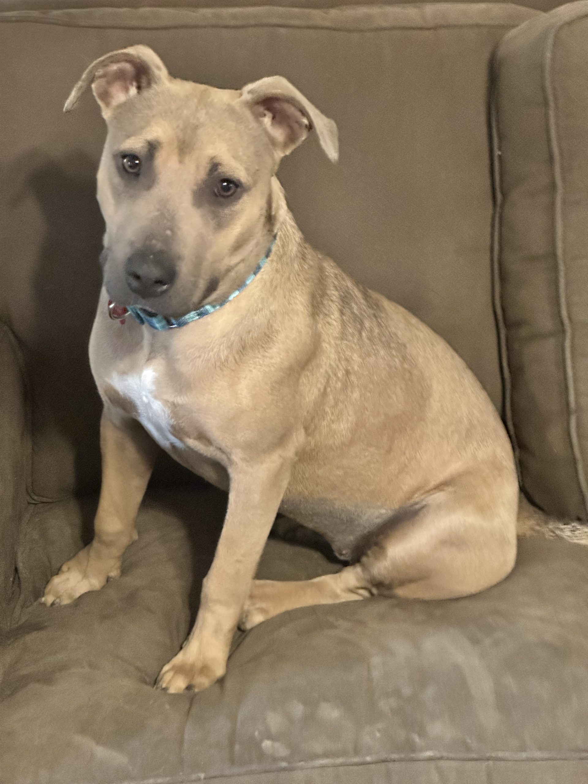 Big personality in a pint-sized body, Daisy Dumpling is all that and more.  This one year old bully breed mix weighs approximately 39 lbs of pure joy and love.  Found wandering the streets, she is now searching for a place to call home and a family to love.