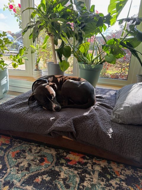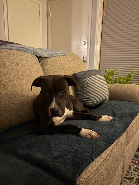 Dan may not have known what it meant to be part of a family before, but he's learning quickly—and absolutely thriving! He has excellent house manners but requires gentle reminds at times since after all he's new to all this. he's house-trained, crate-trained, and sleeps quietly through the night (though he won't turn down a good snuggle in bed if invited!).