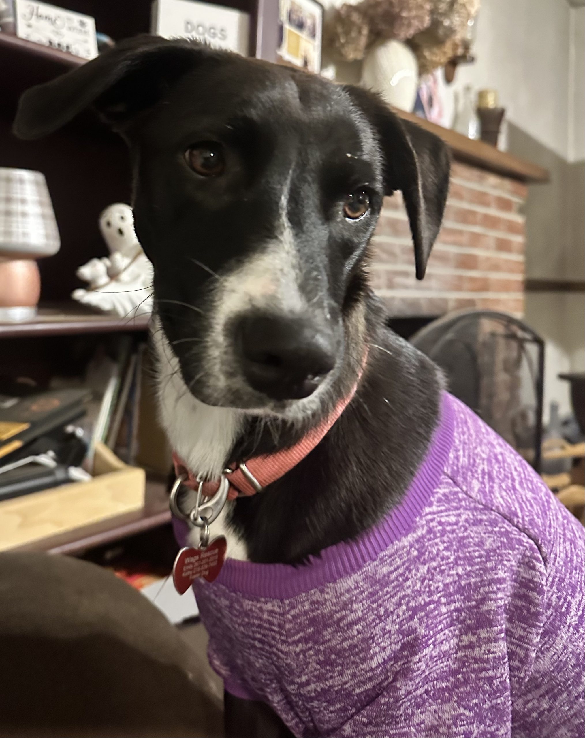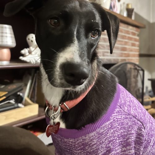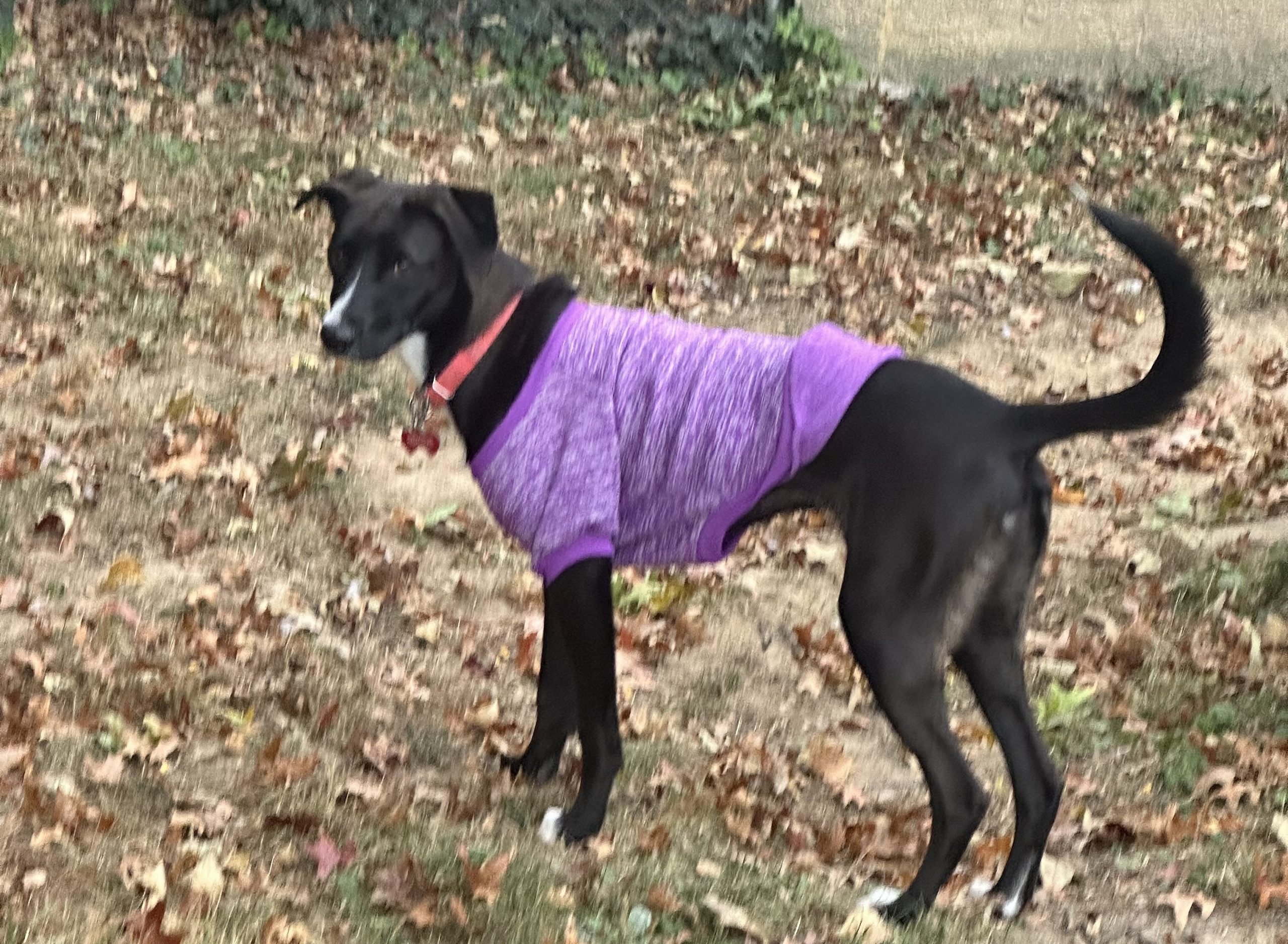 Leashwalking is new to Demi and she is learning as she goes. She’s a little unsure on her walks when she encounters Halloween decorations, cars and kids playing. But we are working on making her more comfortable and confident going through the neighborhood. She seems to be content to be close by, no heavy leash pulling, but does love to stop and sniff the area.
