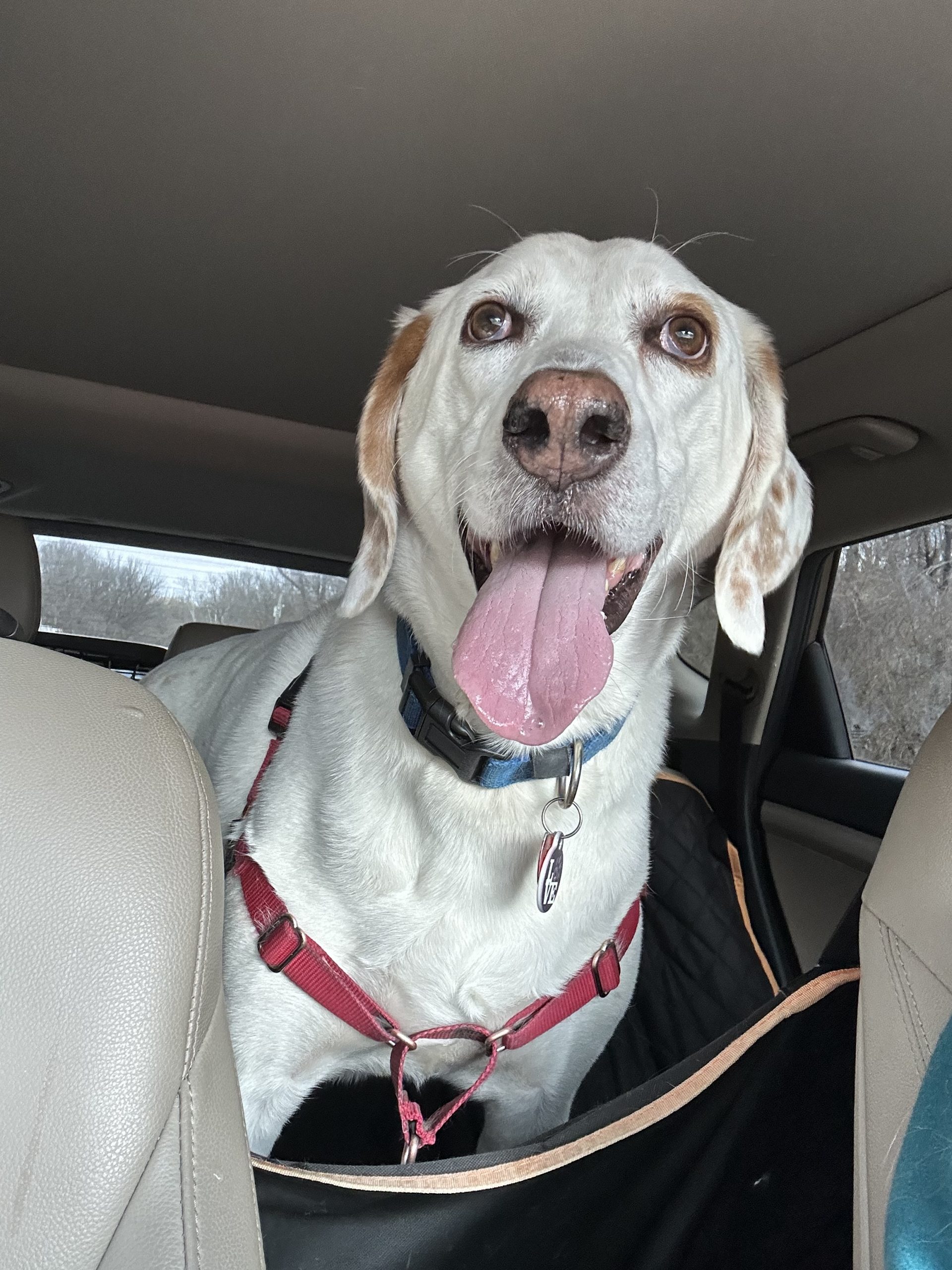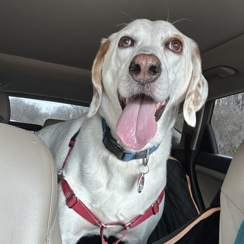Doc came into rescue as an owner surrender after his family suffered some health issues which prevented them from being able to care for Doc any longer. He is a 6 year old foxhound with a gentle temperament who is happy to say hello to everyone (dogs and people) and leans in to get pets. He is goofy and expressive and loves to be a part of activities. Doc was used to having his family around all the time so he is not so sure about being left alone. He is working on crate training but does howl in his crate at times. He may appreciate a family where there is someone around a lot of the time while he is working on adjusting to a new routine.