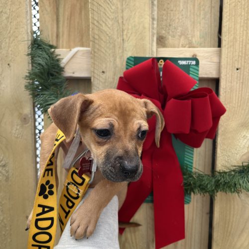 Glida from the Wicked pups is a 10 week old female puppy with brown fur. She is currently under 10 lbs and the smallest of her litter. Glinda is doing well with potty and crate training. She loves to play with her two siblings and 35 lb female dog at her foster's house. Glinda also loves to explore outside, play with toys, and snuggle on her foster parents' laps. She loves everyone she meets including children!