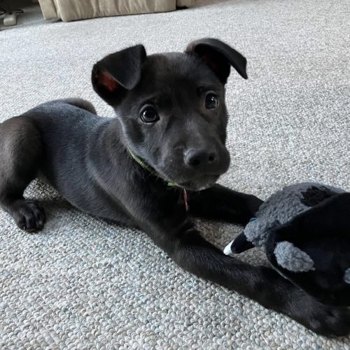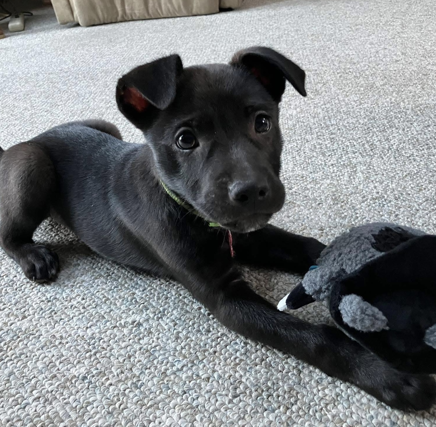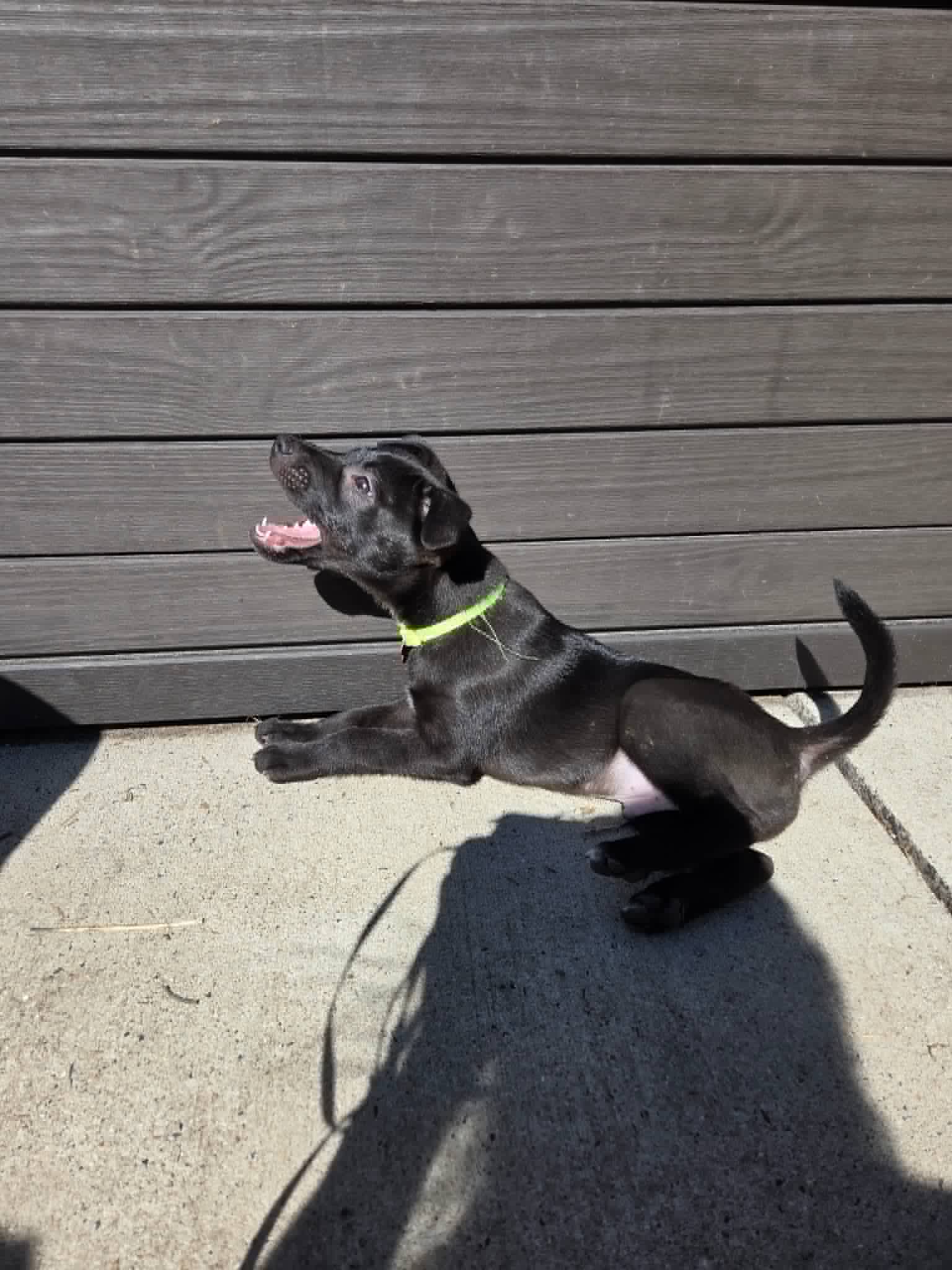 Coach Halas. Active puppy. Doing great with crate training. Good with dogs, cats and kids. Enjoys sunbathing on a nice day. Sorry the belly ache/diarrhea is keeping me very busy. I will try better .