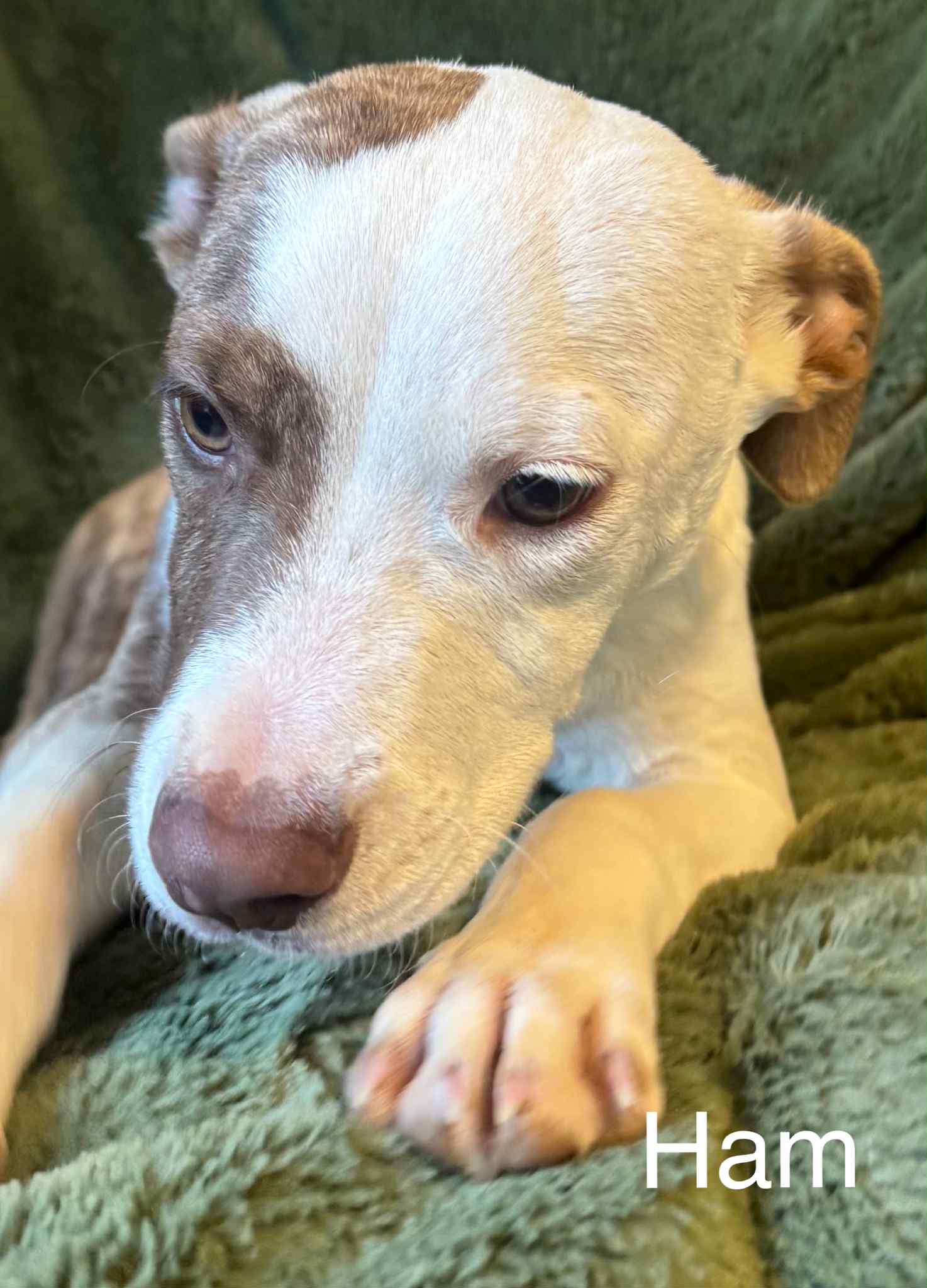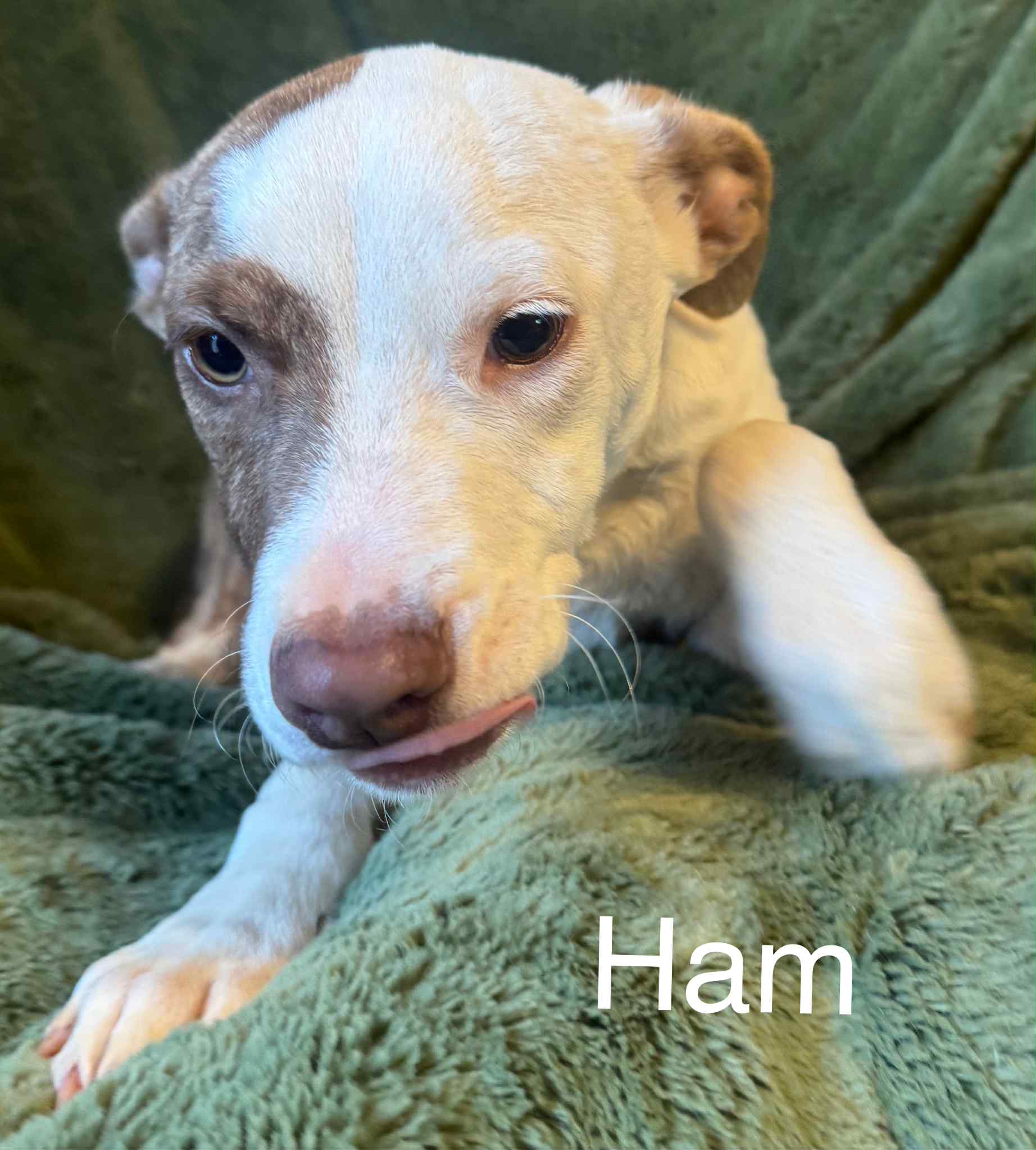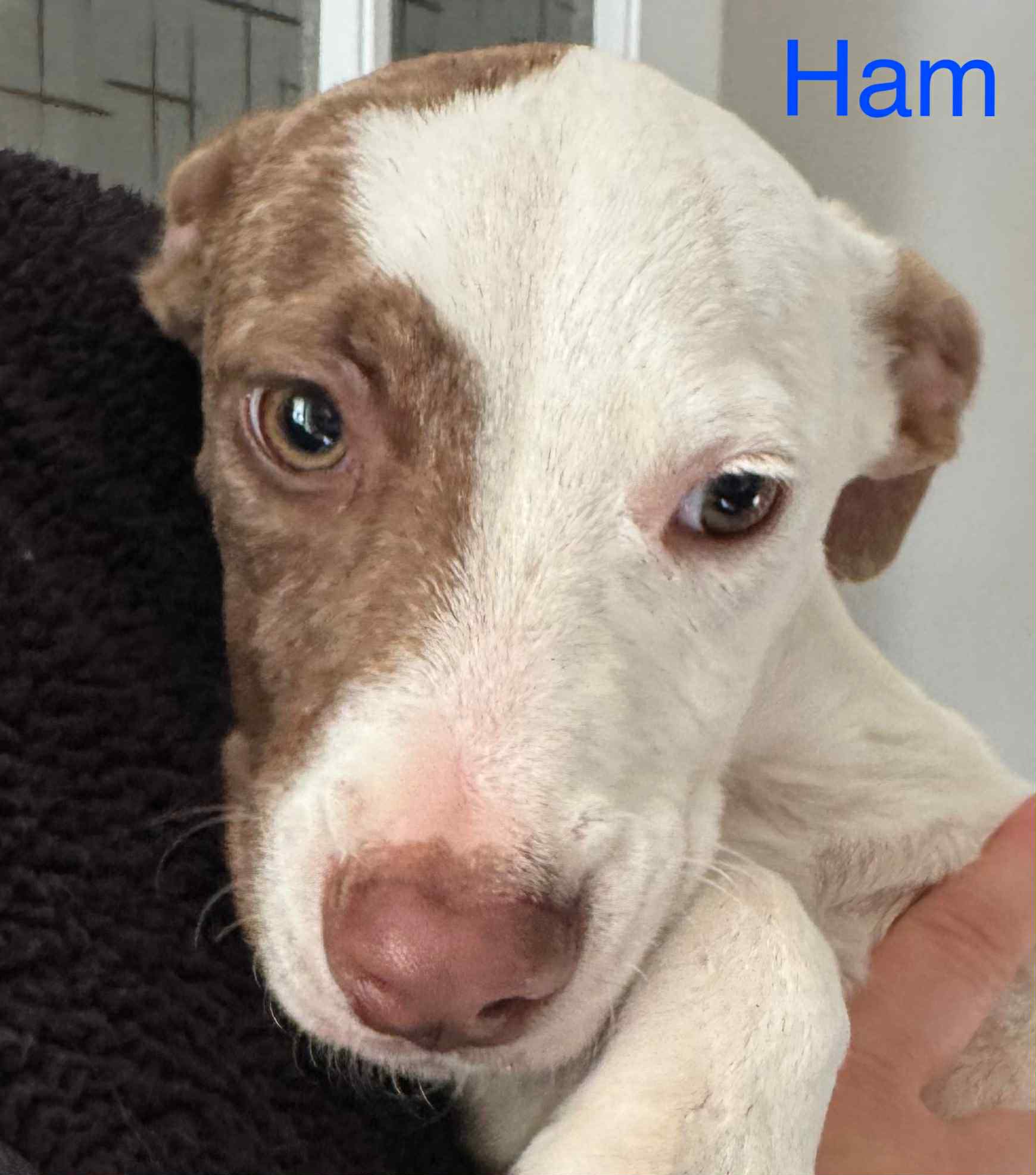 Ham is the cutest, tiniest little mix-breed pup—just 4 months old and packed with sweetness. He loves to snuggle, stay close to his people, and be your constant companion.