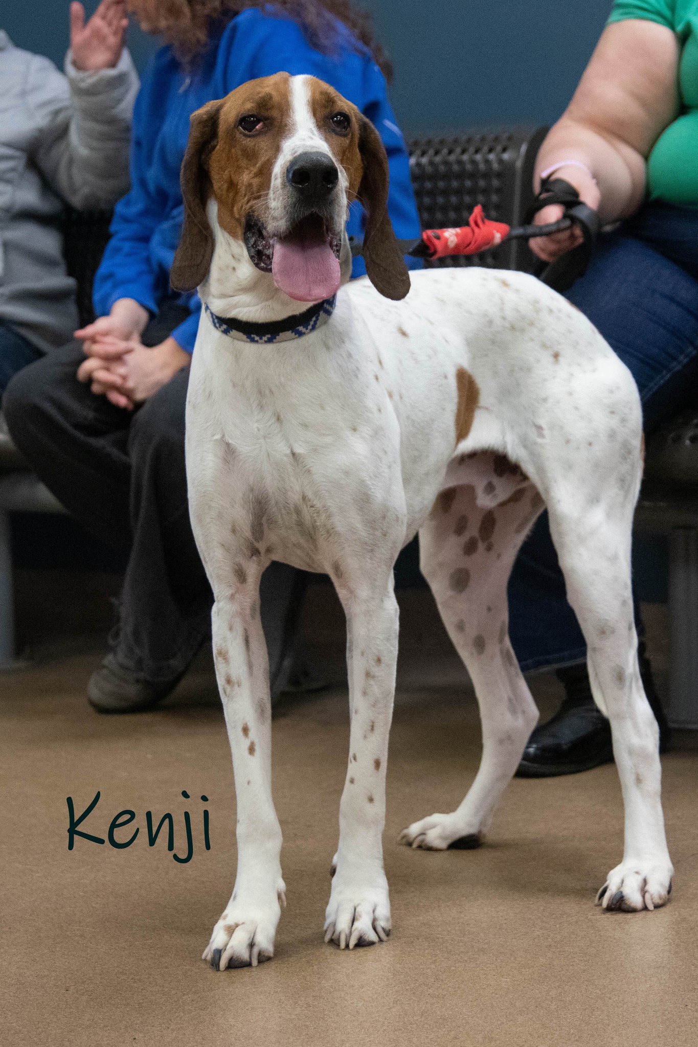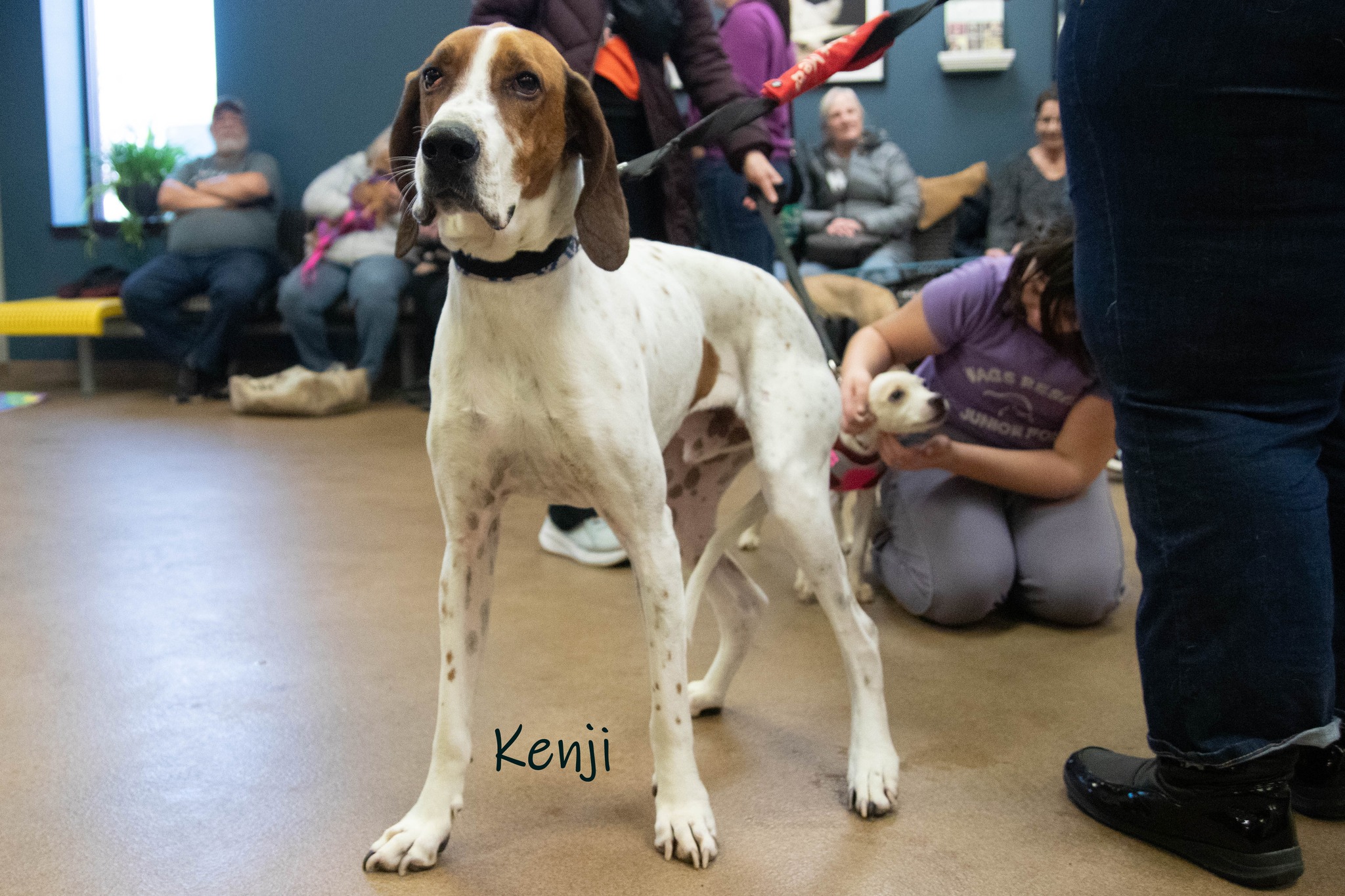 Kenji is a 3 year old tall and handsome hound mix that is an absolute gentleman and a unique soul. Cat, dog, kid friendly with an easygoing, gentle nature. His favorite place to be? On the couch, with a pillow and blanket, snoozing away beside you. He's not much of a cuddler, but he enjoys being in the same space as his people. He will bay if he hears another dog barking or cry if his people leave the house, but he's good enough to leave out of a crate and not get into mischief. While he does have short hair, he will shed, leaving tiny white fluffs behind him. He could use an occasional brushing with a soft brush, and a jacket or warm vest for the snow or cold. He does enjoy going for walks, but cold weather is not his favorite. He also doesn't like sudden movement or noises, and will visibly startle. With gentle encouragement, he calms down quickly. He is neutered, fully house trained, and an absolute love bug. If you're looking for a true companion with looks, personality, and the softest, longest ears, apply to adopt Kenji today!