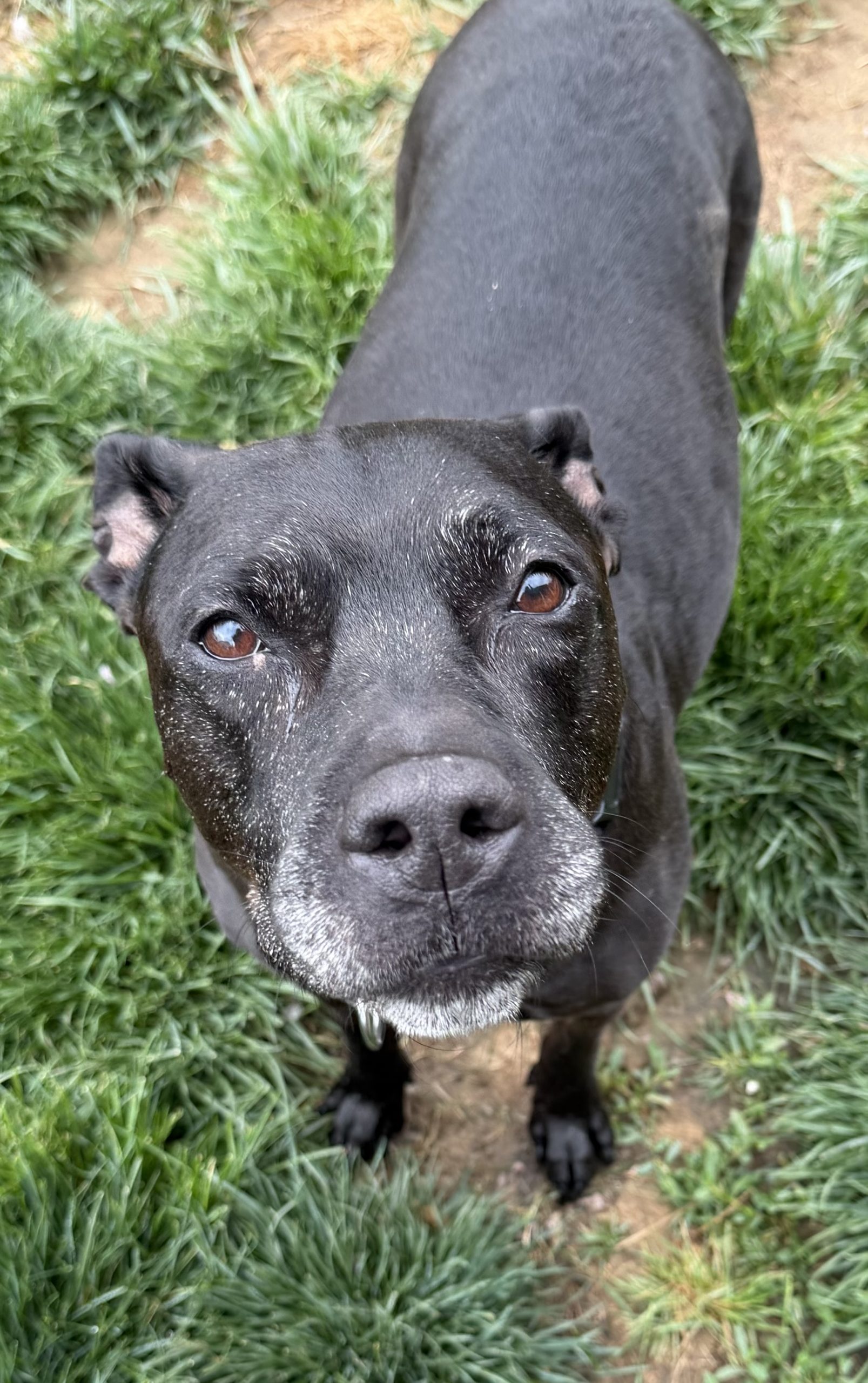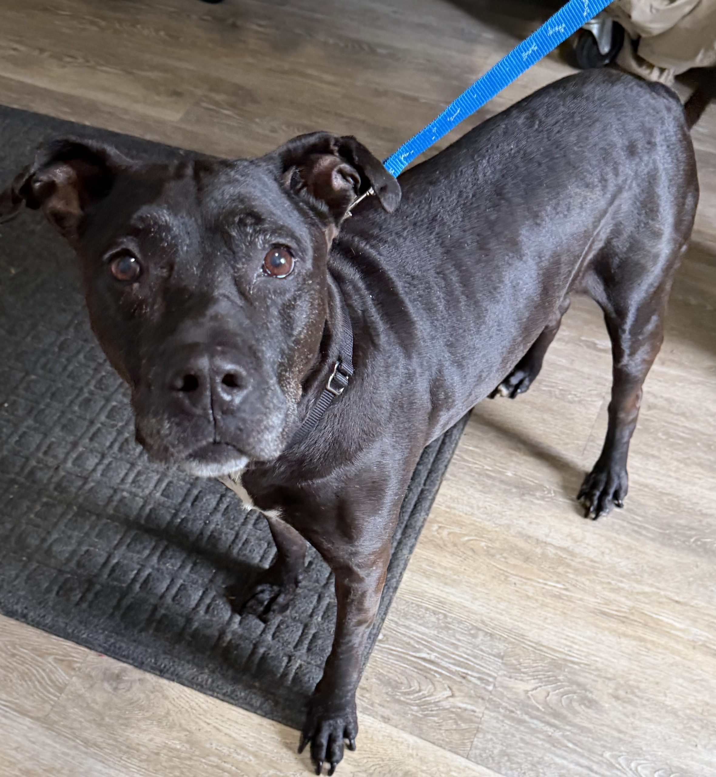 Leche is hearing impaired, likely the result of chronic ear infections earlier in life, but she doesn’t let that define her. She moves through the world with a calm confidence, guided by kindness, routine, and the people she trusts. Her ability to connect goes far beyond sound—she reads your expressions, follows your energy, and responds with unwavering devotion.