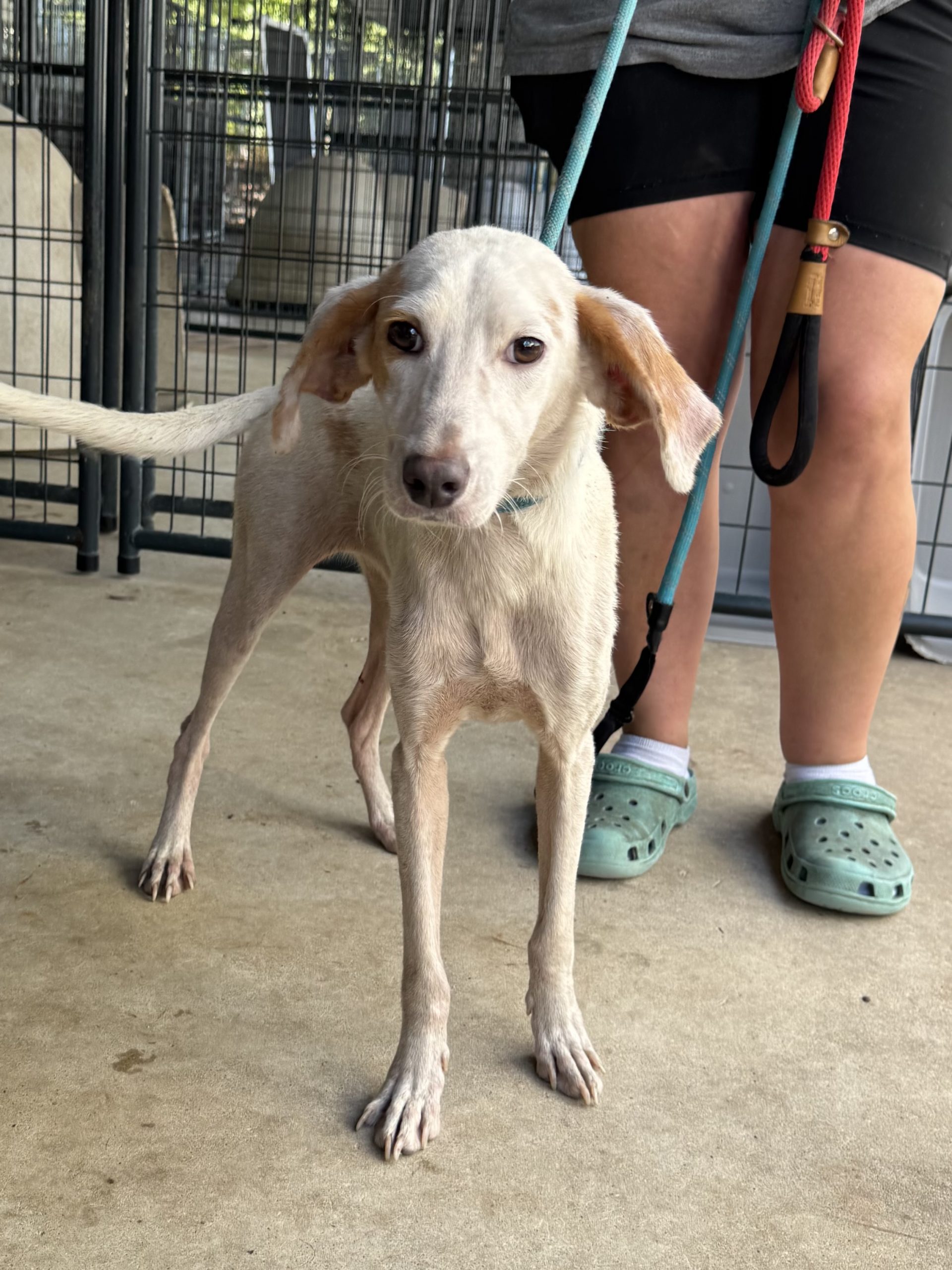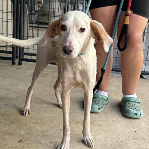 Lemon is a year old and weighs about 25-30 lbs, and could stand to add a few more pounds. This sweet baby will jump for treats but hasn't yet mastered the SIT command (hounds, amirite? lol). Despite her lack of discipline when it comes to commands, Lemon will absolutely entertain you with her adorable zoomies and frolicking in the grass - this girl loves to play! But no squeaky toys please, they freak her out!