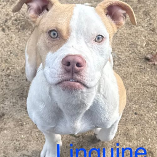 Linguine is a 6-month-old Boxer/Pit mix that is neutered weighing around 20-ish pounds, and he’s as sweet as they come! He’s loving his new life up in PA, even if he’s not the biggest fan of the snow. This affectionate boy is a total cuddle bug who’s happiest when he’s curled up on the couch right next to you.