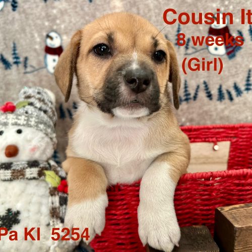 Here are the Adam’s Family Puppies! These 3 girls and 1 boy are 8 weeks old and ready to play! There mom is supposed to be on the smaller size, about 35 lbs, and dad was a rolling stone that didn’t leave a picture. Mortisha, the the biggest at a little over 9 lbs, Pugsley is right behind her at 8 lbs, Wednesday is around 6 lbs, and little Cousin It, is not quite 6, (and she’s a girl). All are very cute, love to play and seem to be very healthy. If you want to make one of these sweet little pups a family member, get your application in to Wags Rescue!