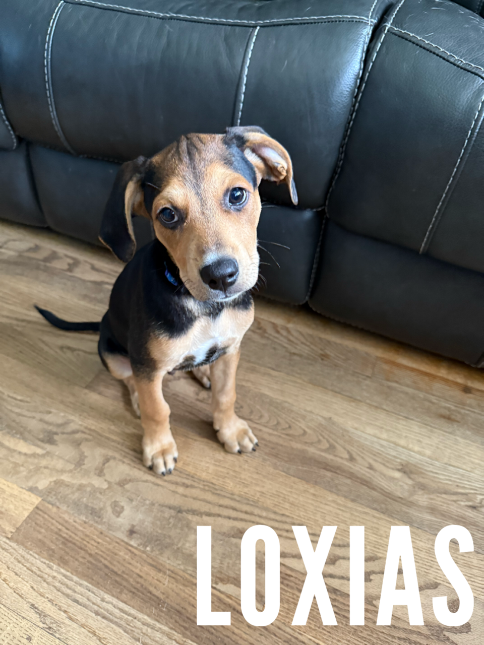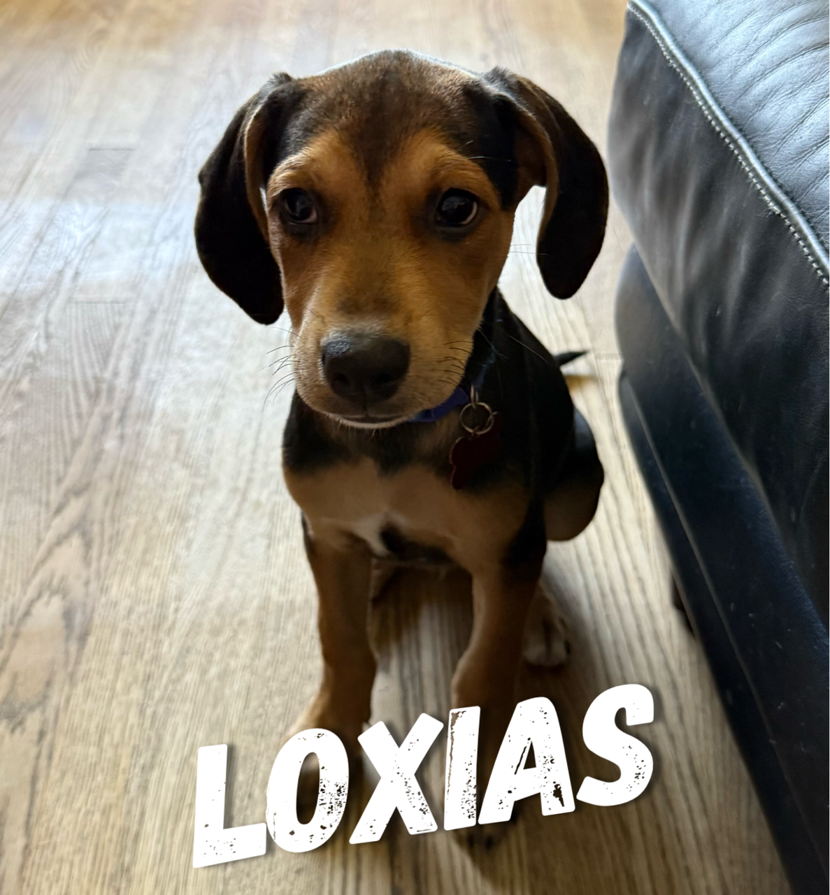 Born on May 5, 2025, Loxias is a sweet and curious hound mix with a big heart and even bigger personality. Named after a Greek god known for wisdom and guidance, Loxias is already showing he's a smart, loving pup. He enjoys playing with kids, wrestling with his foster furry siblings, and exploring the world around him. With his puppy charm and gentle nature,Loxias is ready to lead the way to your heart — and his forever home.