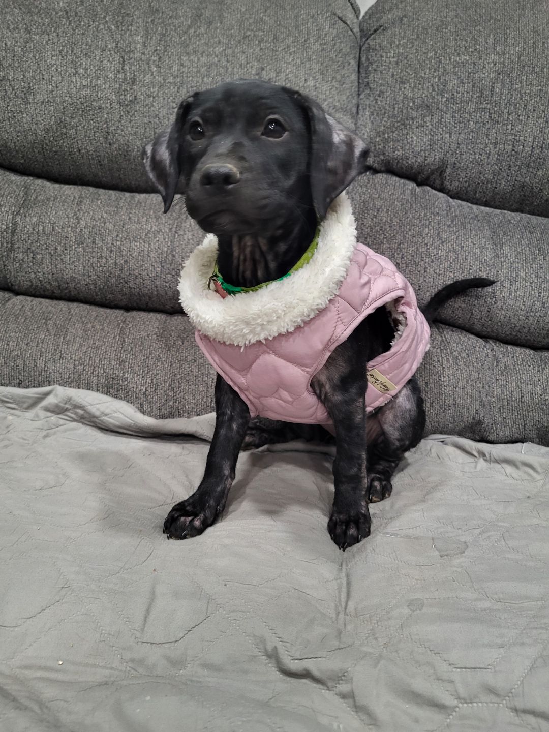 Sunshine is a young female puppy who is currently living with her brother (Slode) in a foster home. She can be timid at first but is quick to reveal her playful and lovable personality. She is doing a great job potty training with consistent potty breaks and treat rewards. Sunshine sleeps in her crate throughout the night and runs right to the back door when she wakes up. Although she loves to play with other pups and toys, her favorite pastime is to be snuggled up in a cozy blanket with her humans. Sunny is looking for a forever home and cozy blankets to call her own.