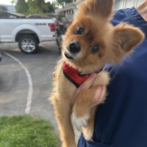 Maxi is an approximately 5-year-old neutered male Pomeranian mix, weighing in at just 5 lbs. This little guy was recently surrendered in Philadelphia, and while the world may seem big and a bit overwhelming to him, he's slowly learning that it can also be safe and full of love.