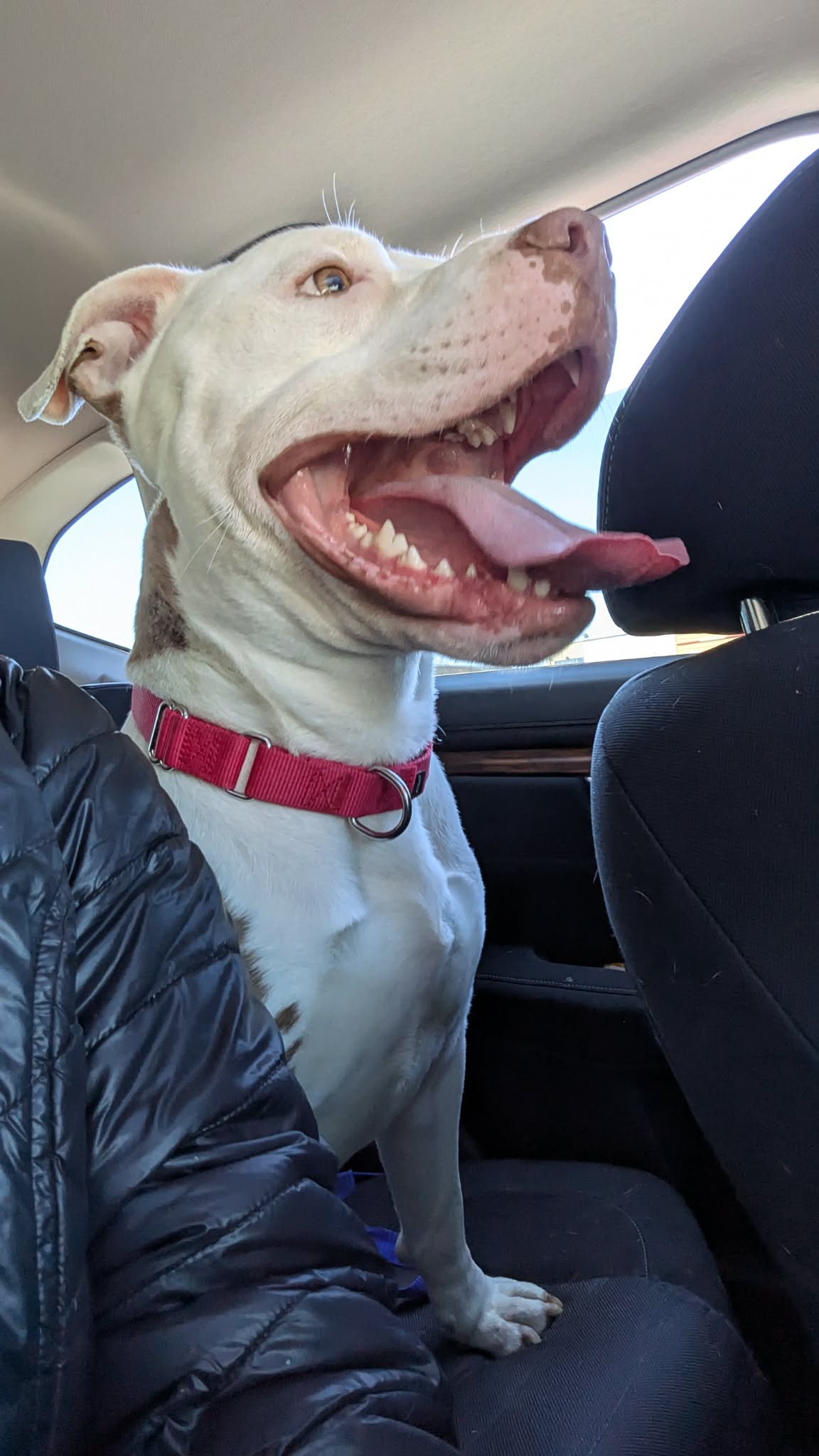 He's got a playful spirit, but he's also been showing his softer, more chill side—happy to just be near his people, soaking up attention and being his sweet, slightly derpy self.