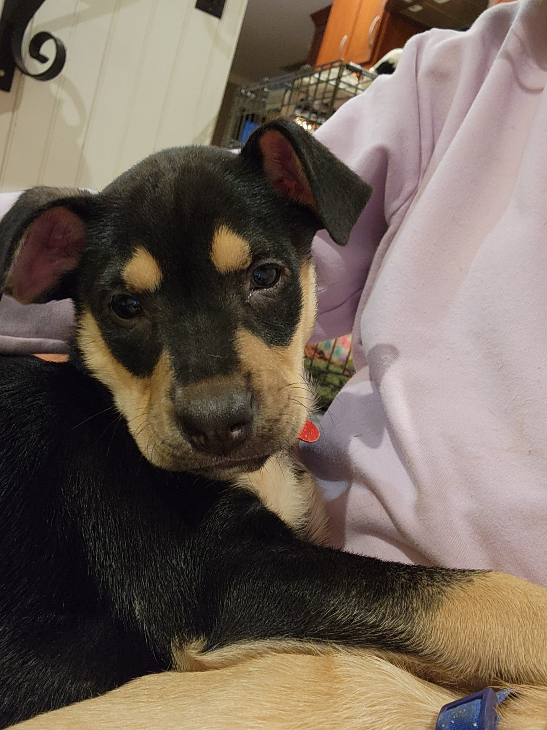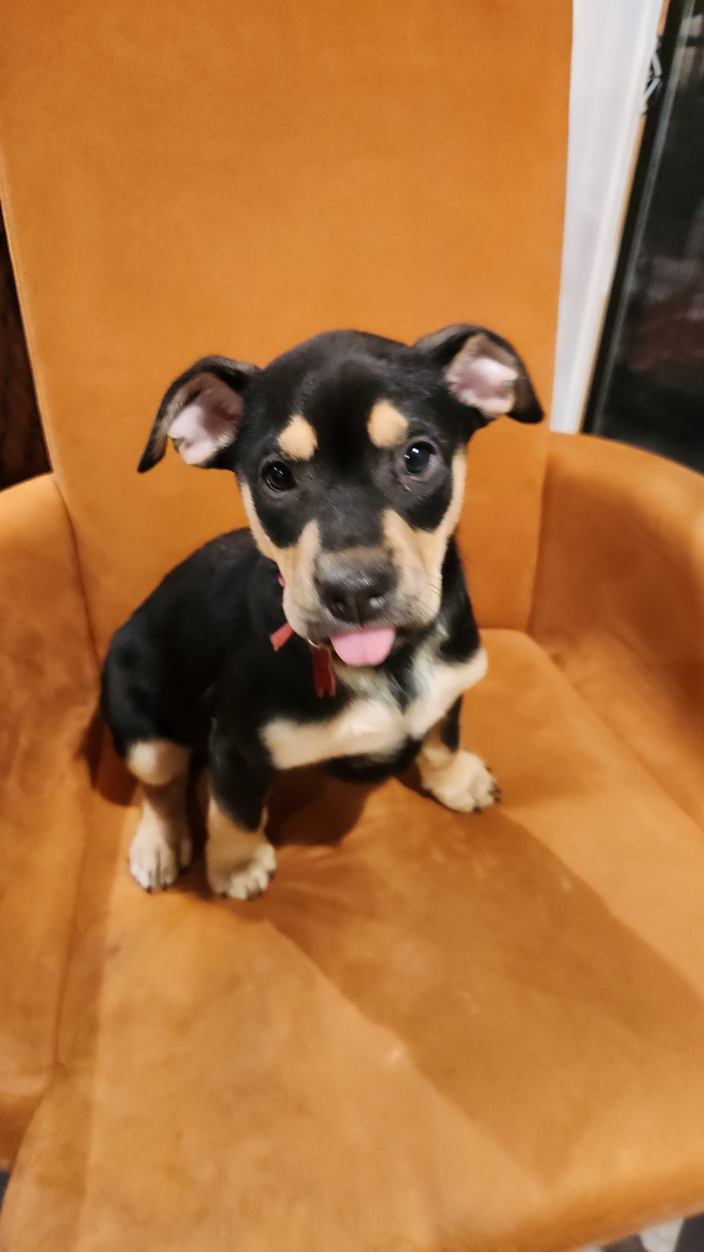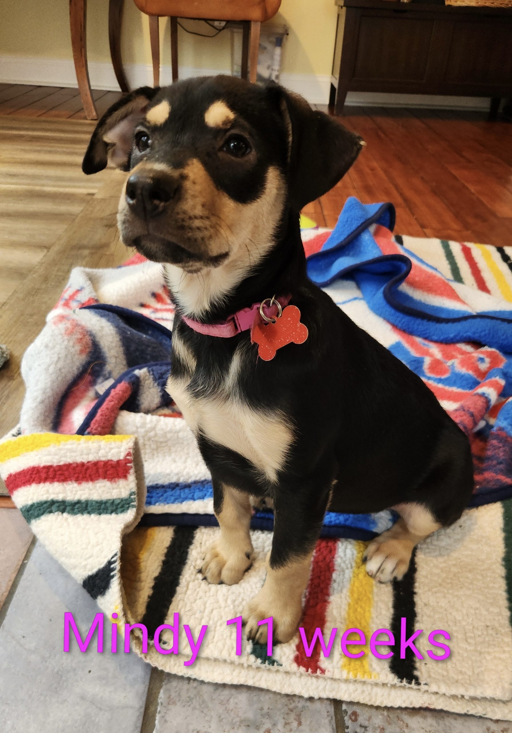 Mindy may be small but she is mighty! This gal is a bundle of energy! Mindy is ready to play, no notice necessary! Mindy enjoys long outdoor play sessions, followed by toy time and a snooze! Put that on repeat, and that marks Mindy's perfect day. She wrestles with her brother like a girl twice her size. Mindy shows signs of being an independent pup. Although she loves playing with her brother, she also likes her alone time. She loves everyone she meets and greets them like old friends. Mindy is working on manners and potty training. She likes to ring the potty bells and is making the connection after only a few days. She has taken to the crate well so long as she can bring her toys with her! Mindy is ready to spread the joy and meet her new family!