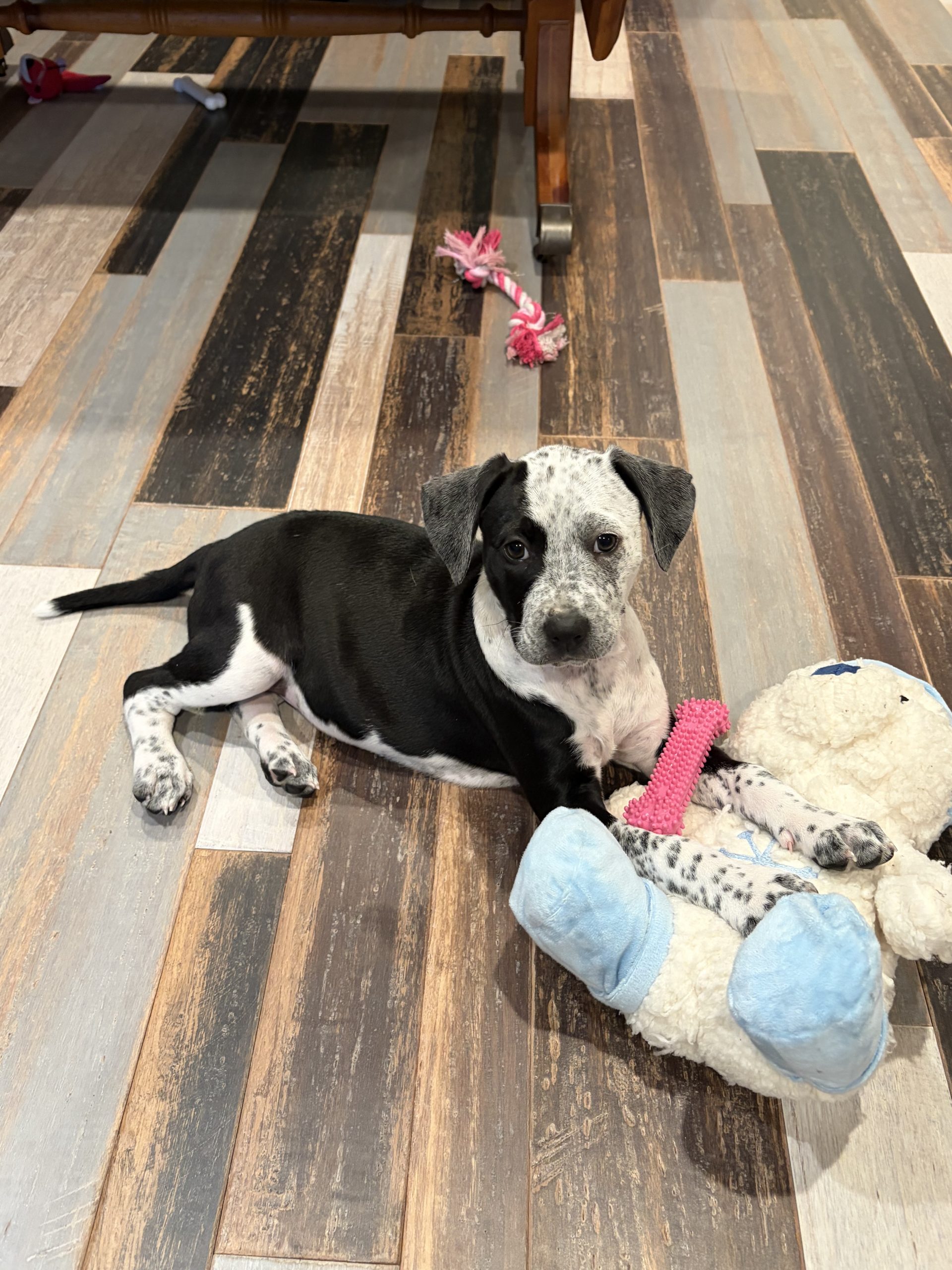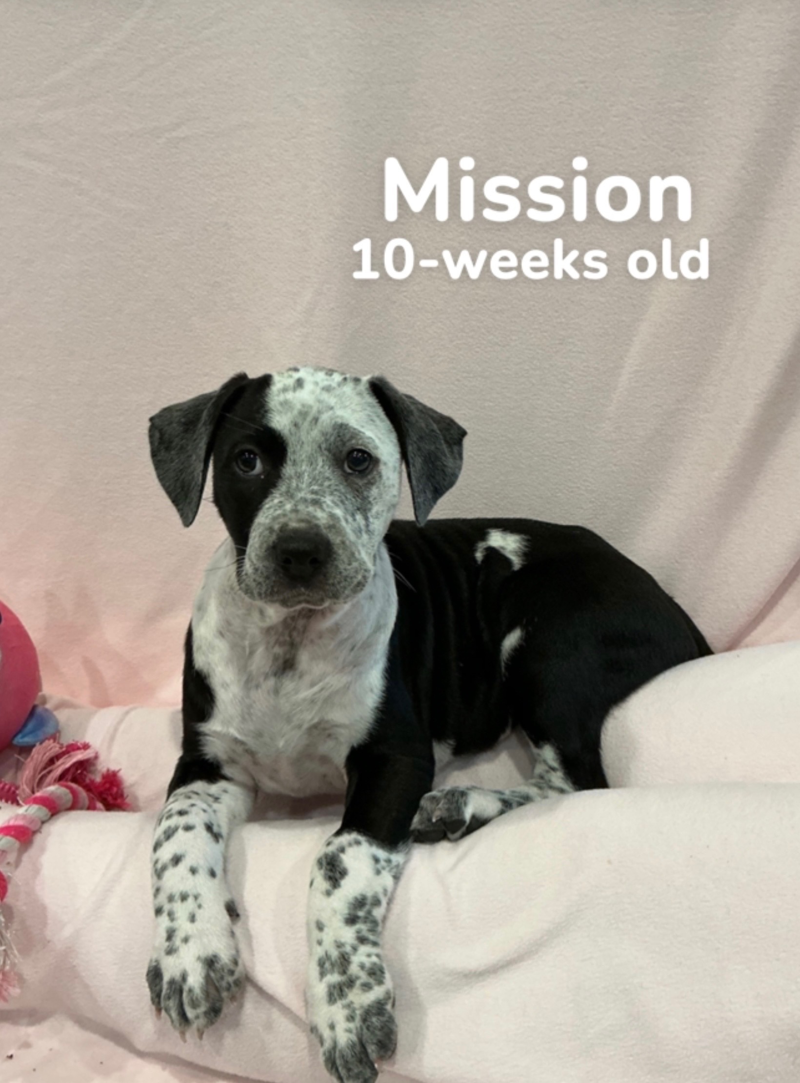 Meet Mission! A 10-week-old female mixed breed puppy ready to find her forever home! Mission is full of playful energy and curiosity, always eager to explore the world around her. Mission is a typical puppy with bursts of energy followed by long naps. With her lively spirit and sweet nature, she's sure to bring joy and excitement to any family looking for a fun-loving companion!