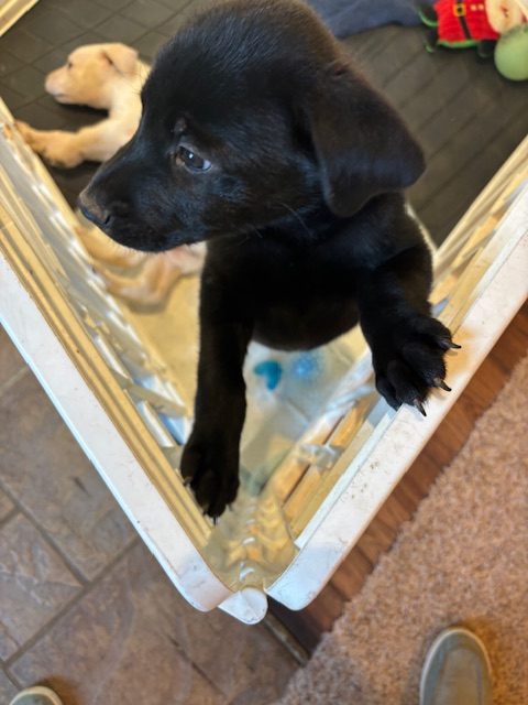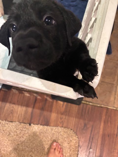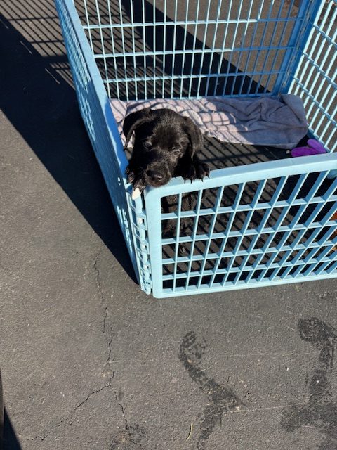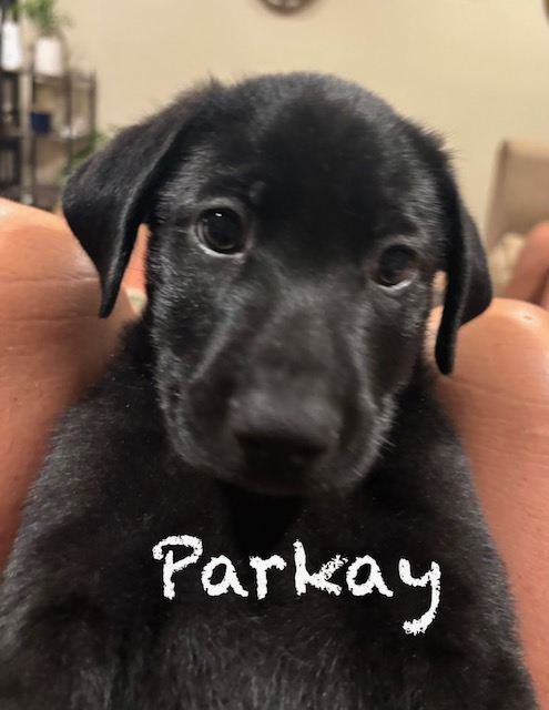 Say hello to Parkay —Weighing in at just over 11 lbs he is a 10-week-old bundle of joy with a shiny black coat and a heart full of love! This sweet pup is curious, playful, and always ready for an adventure (or a good cuddle on the couch).