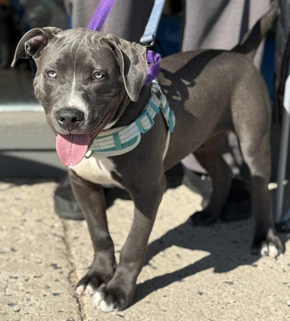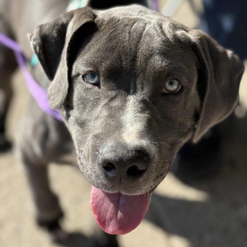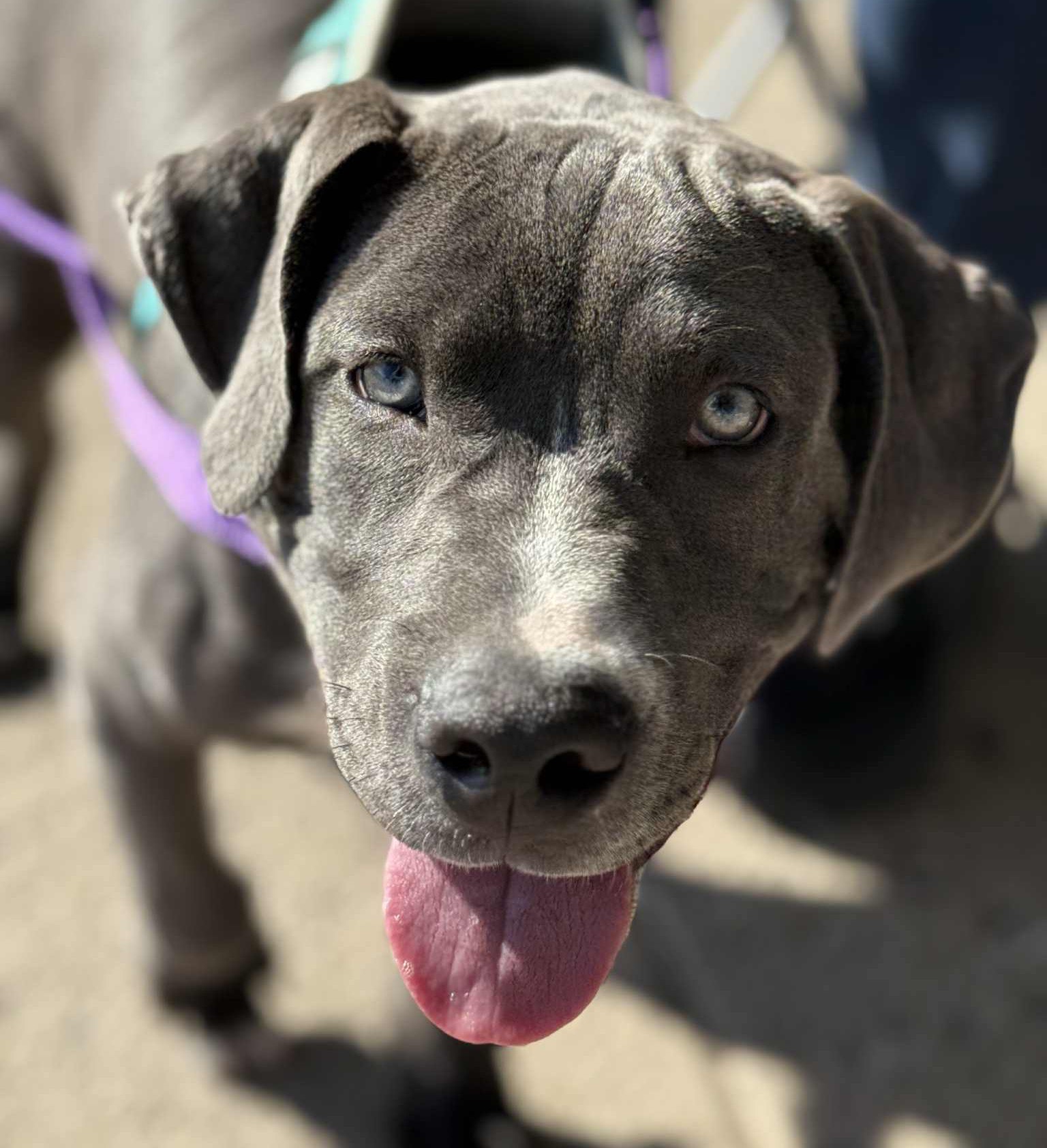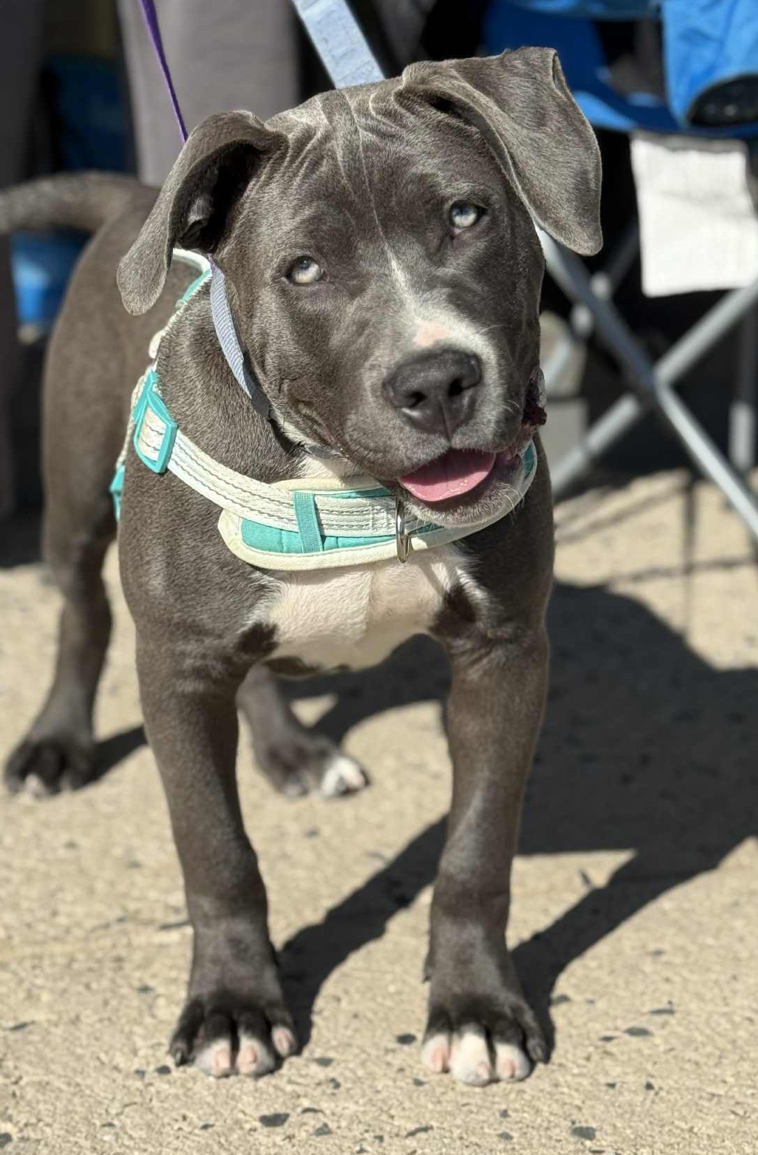 Hi! My name is Rico! I am currently looking for my forever home! I was turned into the shelter at the tender age of 4 months old, when I became sick with the Parvovirus. Lucky for me, WAGS rescued me just in the nick of time! That is all behind me now and I am feeling great! I am residing in a loving foster home, with 3 other dogs. I am full of puppy energy and am doing great on housebreaking! I am going to be a very big strong boy! My ideal home will have a big yard with a tall secure fence so I can run and play. A fellow playmate would be great to help me burn off my energy. I love to cuddle, but that is only after I have had a chance to run and play play play!. I sleep quietly in my crate at night. As you can see, I am extremely good looking! My gorgeous gray coat and piercing diamond blue eyes, along with my charming personality will melt your heart! I hope to meet you soon!
