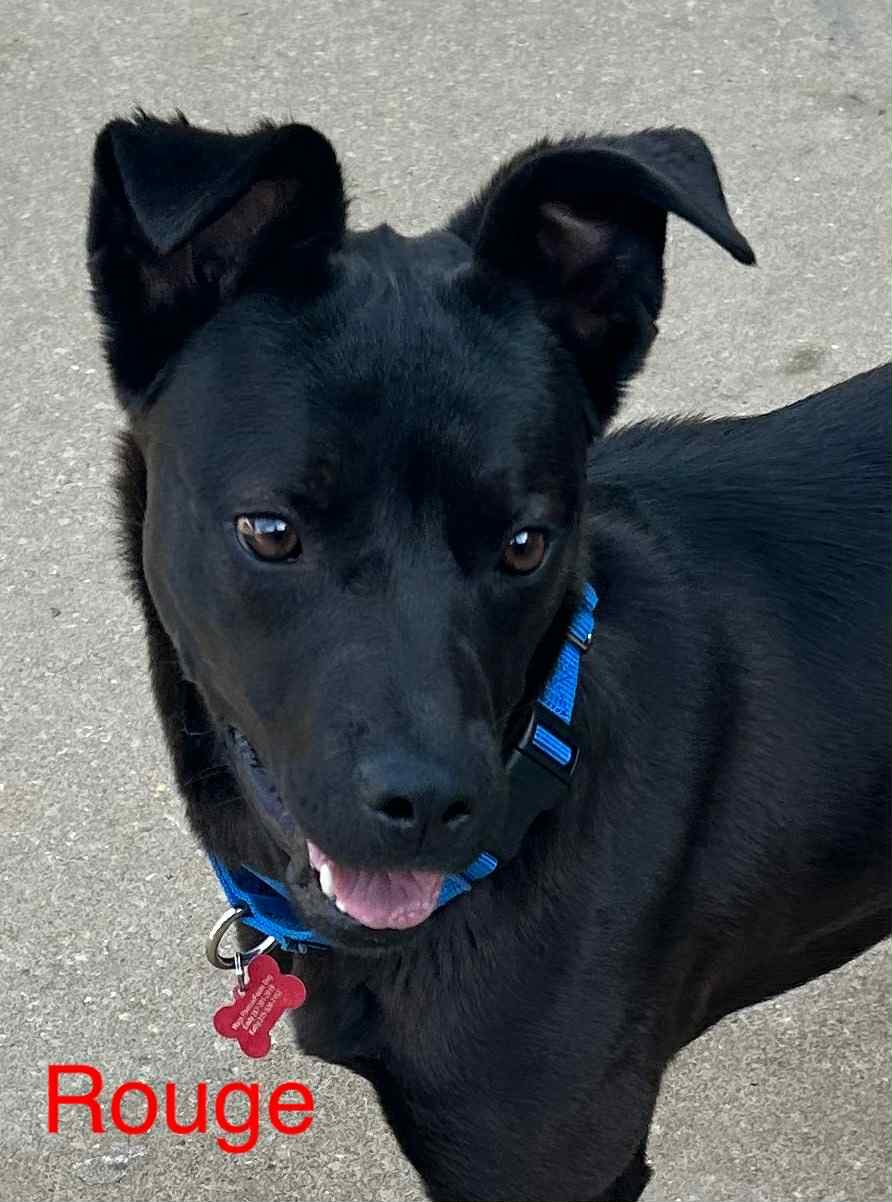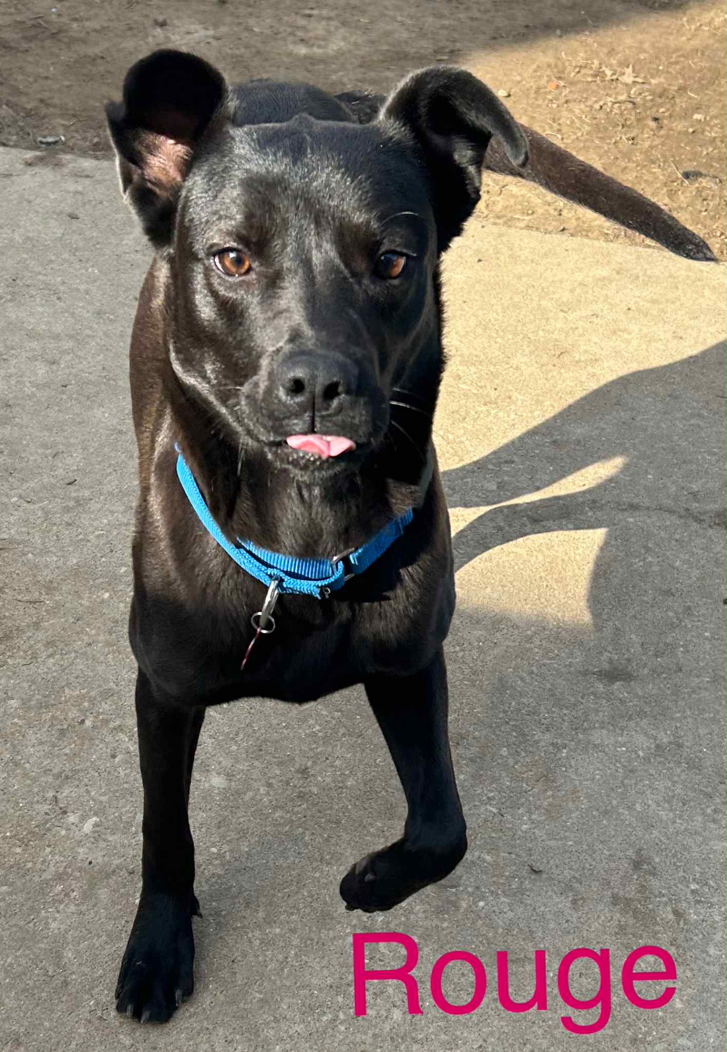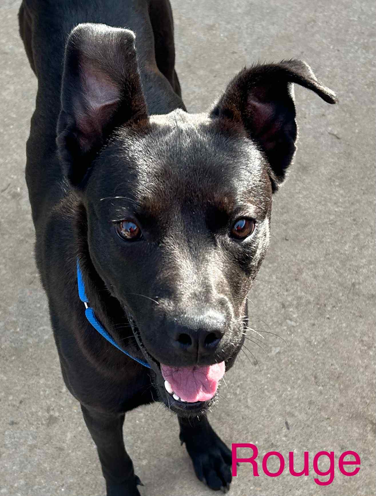 Rouge is a 9-month-old Lab mix with a personality as big as her smile—she might be wearing a blue collar, but don’t let that fool you, she’s a girl through and through! If you want to laugh, play, and enjoy endless puppy shenanigans every single day, Rouge is your girl.