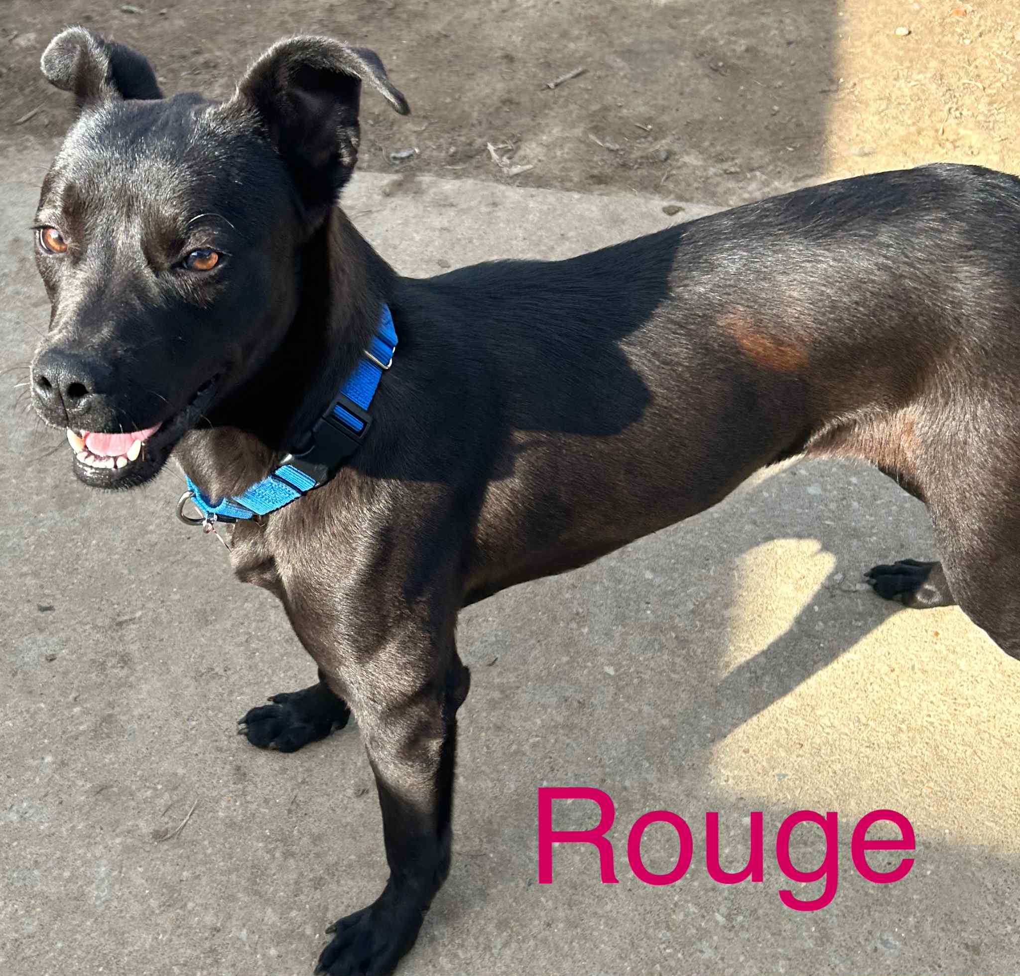Rouge’s journey hasn’t been easy—she spent over half her life in a South Carolina shelter just because she’s a black dog, and she was even found tied to a tree around 5 months old. But since coming up North, she’s embraced life to the fullest! She’s discovered the joy of zoomies, loves running in circles around the backyard, and shows off her long legs with every playful sprint.