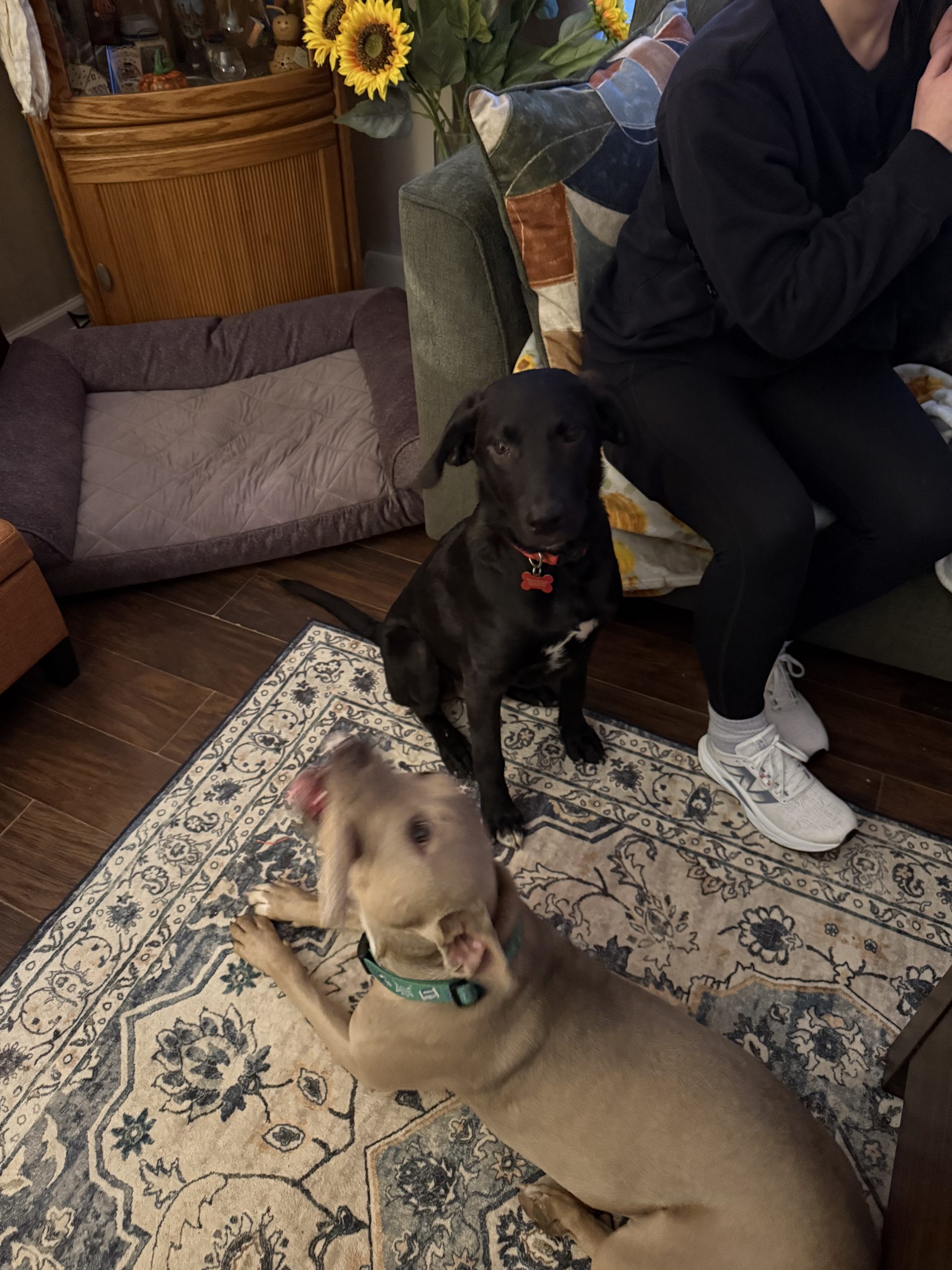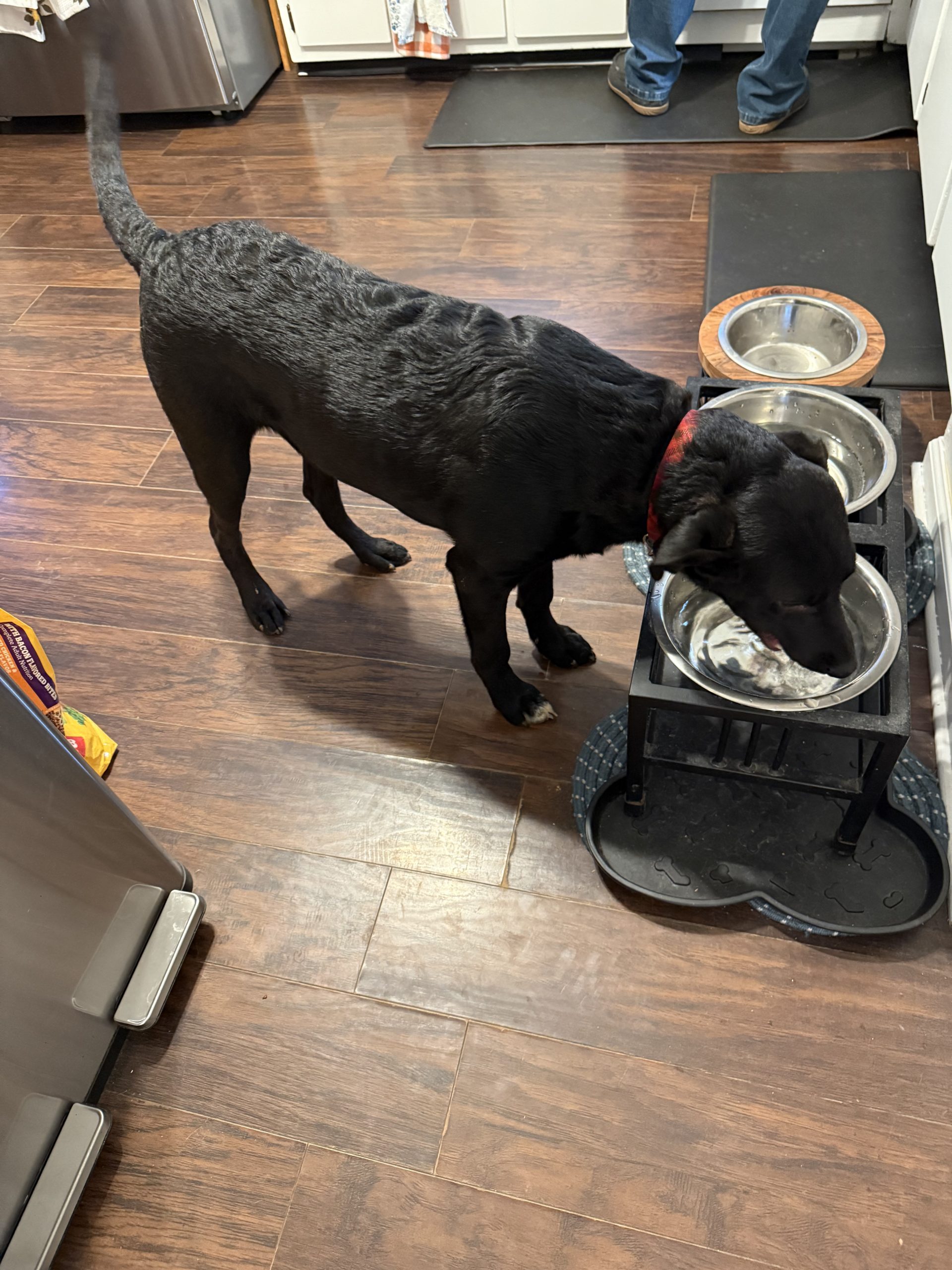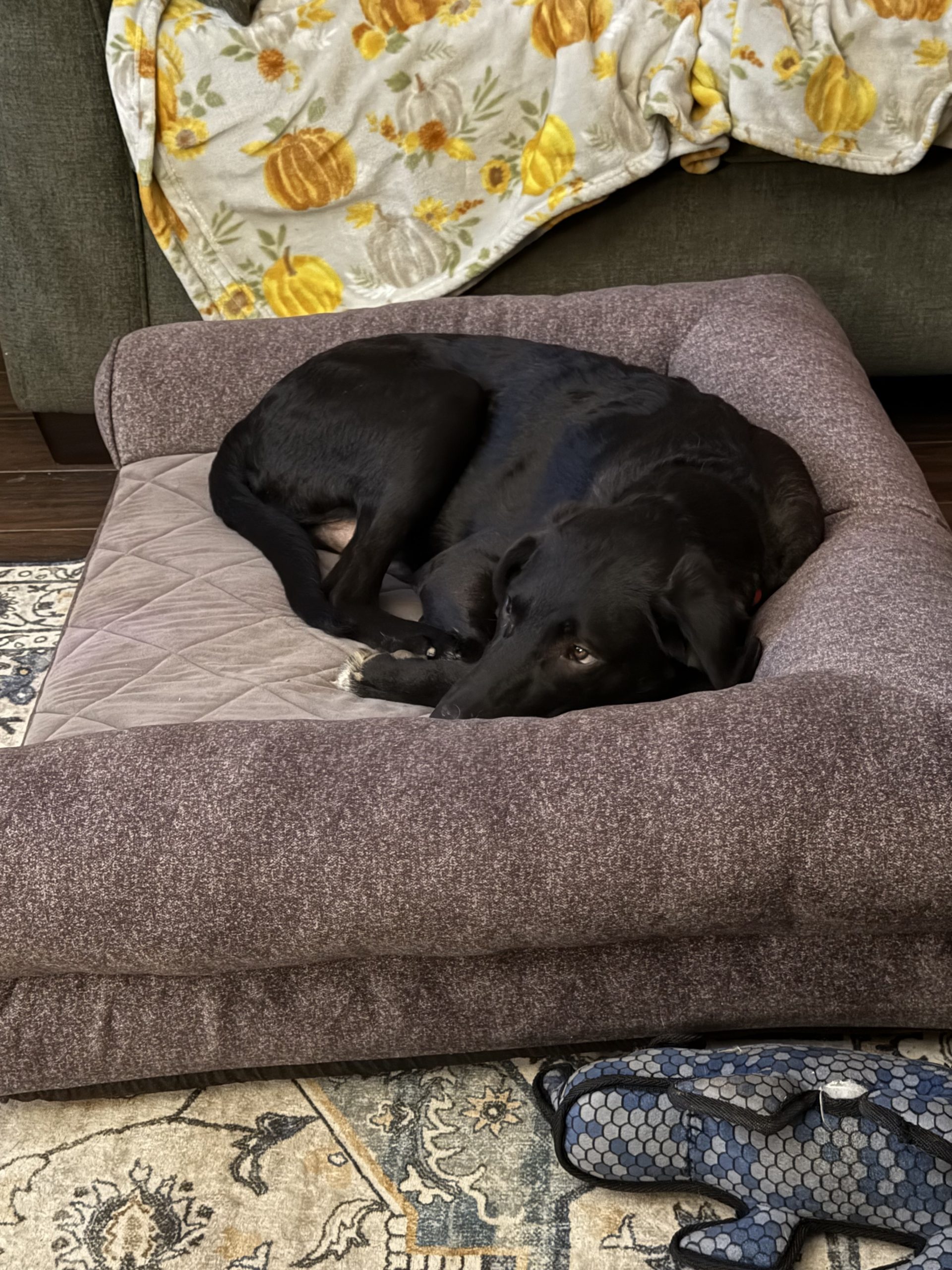 He is house trained, crate trained, great with other dogs and loves his squeaky toys. Shazam is food motivated and will need a slow feeder, also likes to drink a lot of water. He maybe a water dog. Won’t find out till the summer.