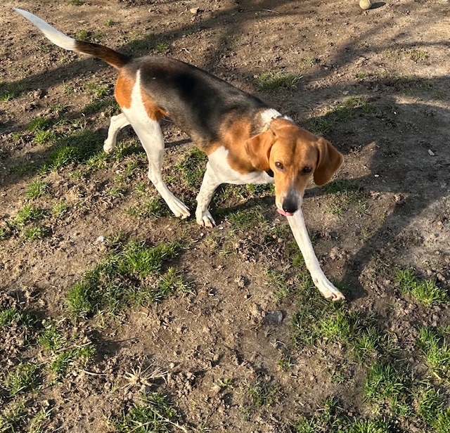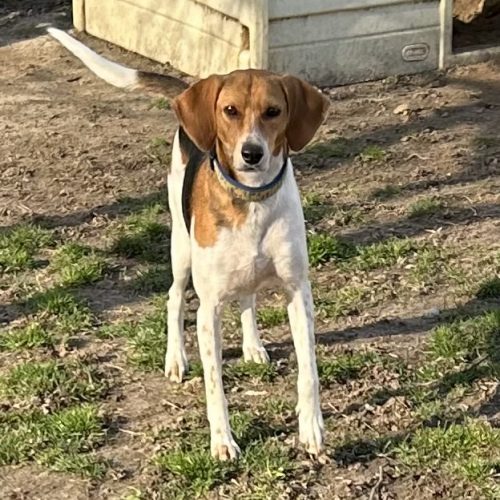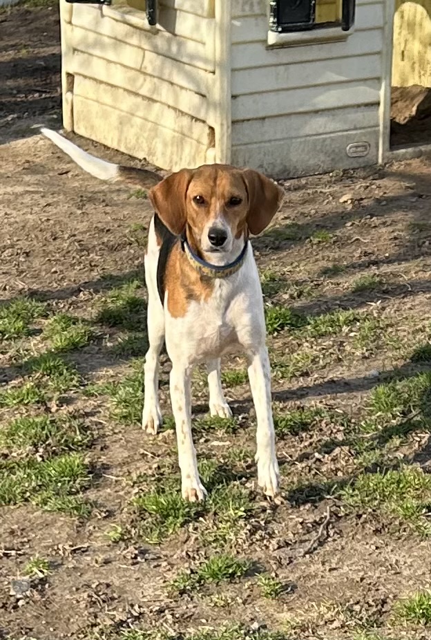 Shiloh is a sweet 5 year old treeing walker hound mix. She is a spayed female. About 40-45 lbs. She is great with other dogs. She has lived with cats and other small animals before.