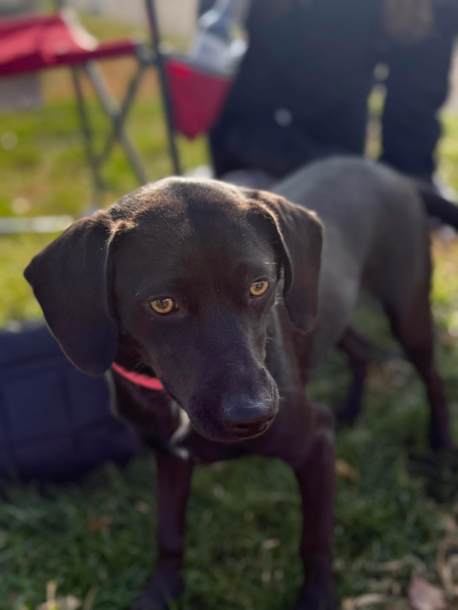 I am said to be a lab mix, and that may be so but I am a petite girl. I don't much like being picked up, but even if you do I will positively smother you with kisses. I can sit and jump for treats, and I'm good at howling along with a siren! If you're eating something, I'll do everything in my power to get you to share it with me, including jump in your lap and eat off your plate. Don't say you weren't warned! Luckily I am too short to reach the counter.