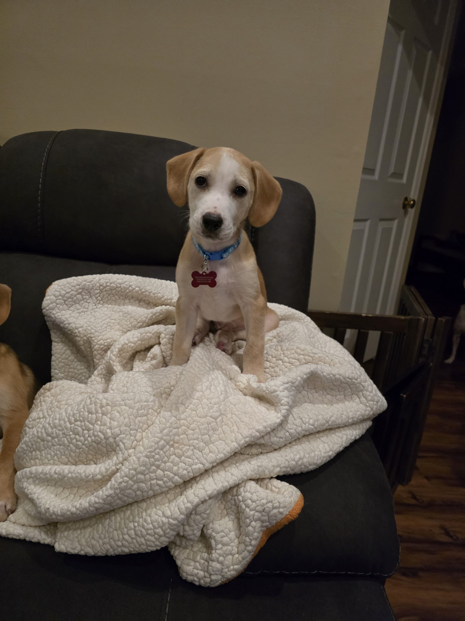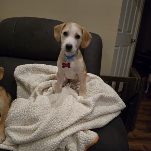 Meet Sunny! At approximately 3 months she weighs about 15 lbs. She has been hanging out with her foster dog siblings and is doing a great job learning social cues and how to interact appropriately with her friends.