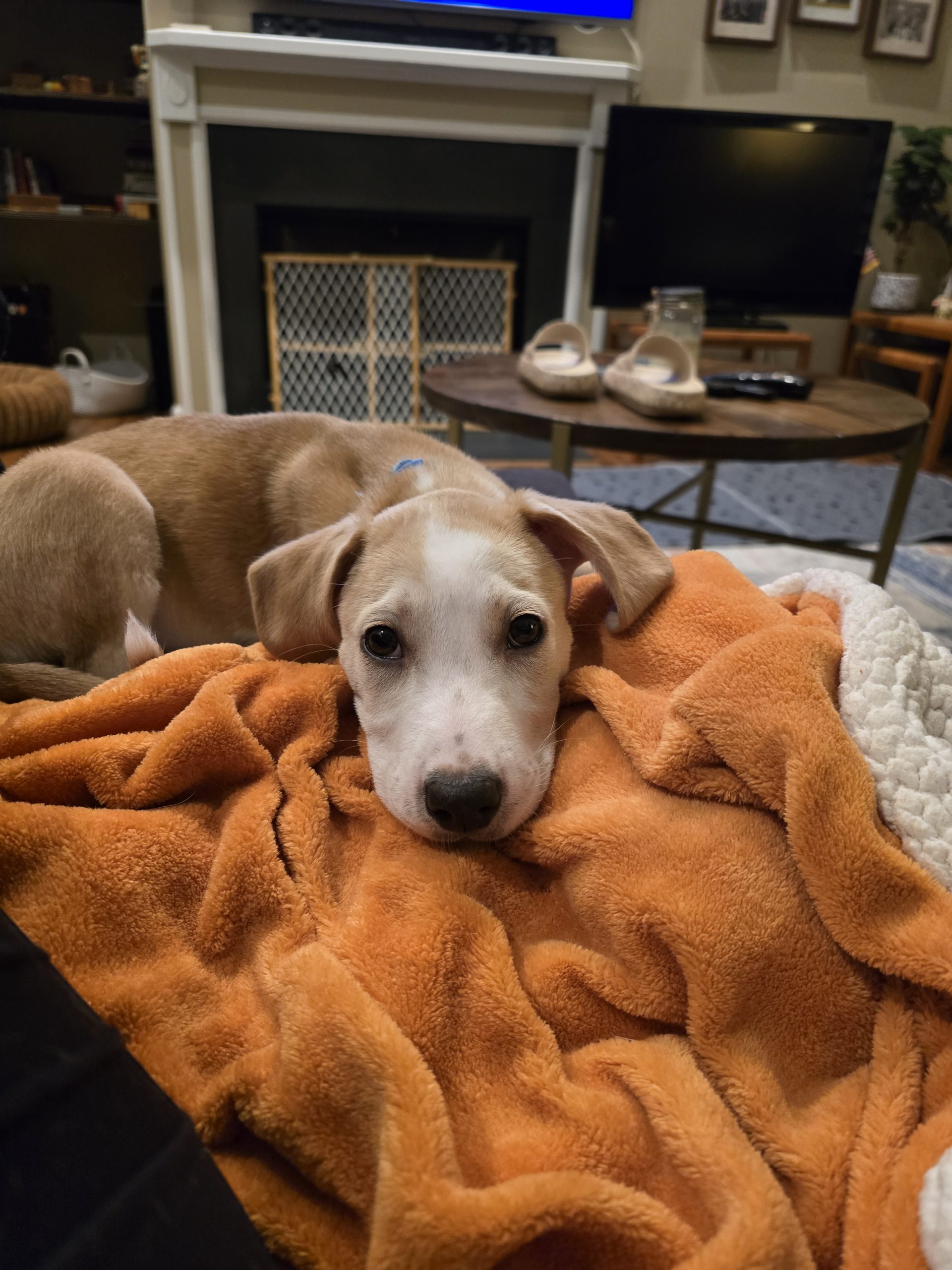 Sunny hasn't met a human or dog she hasn't liked. She is a typical energetic puppy and loves to play, but she also likes to chill and snuggle to get belly rubs.
