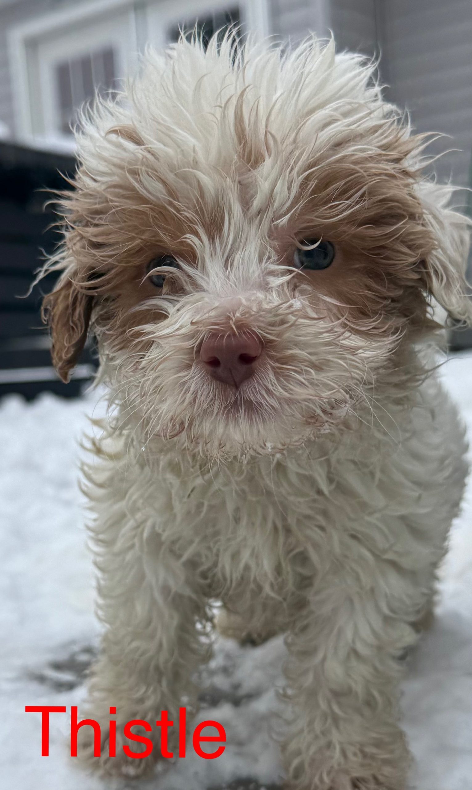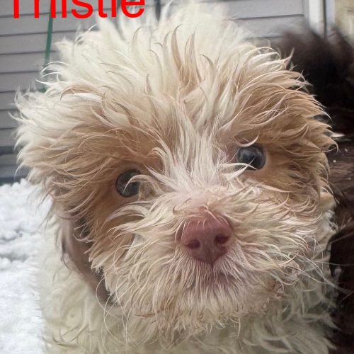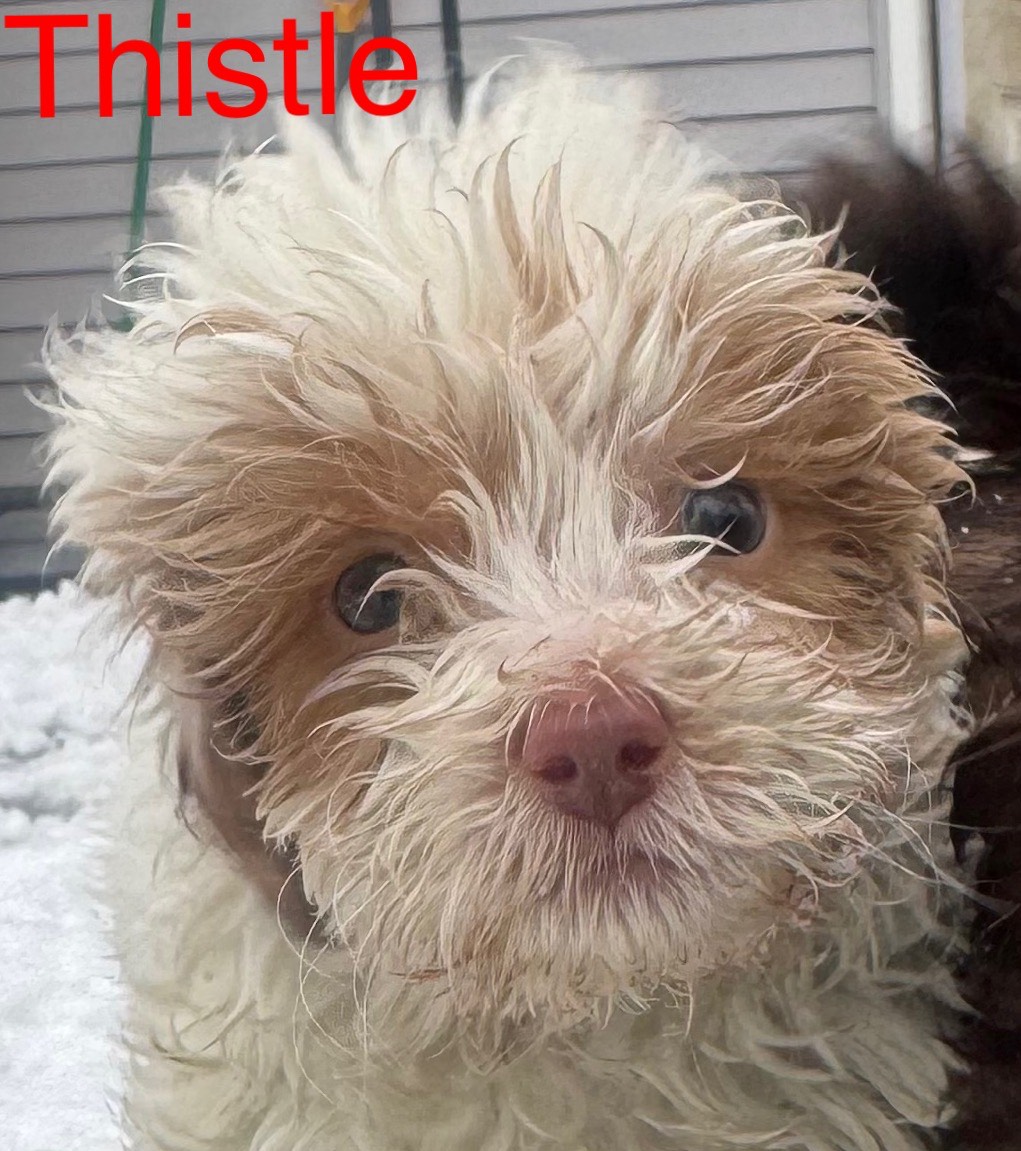 Meet Beautiful Thistle, a 2.8lb 8-week-old Maltipoo mix with a heart full of joy! This sweet, friendly, and goofy puppy loves to play and cuddle. Her gentle nature makes her a delightful companion for any fun-loving family. Thistle's playful antics and funny behaviors will surely bring laughter and happiness to her new home. If you're looking for a cuddly friend who will brighten your days and fill your life with love, Thistle is the perfect match. Adopt Thistle today and experience the pure joy of puppy love!