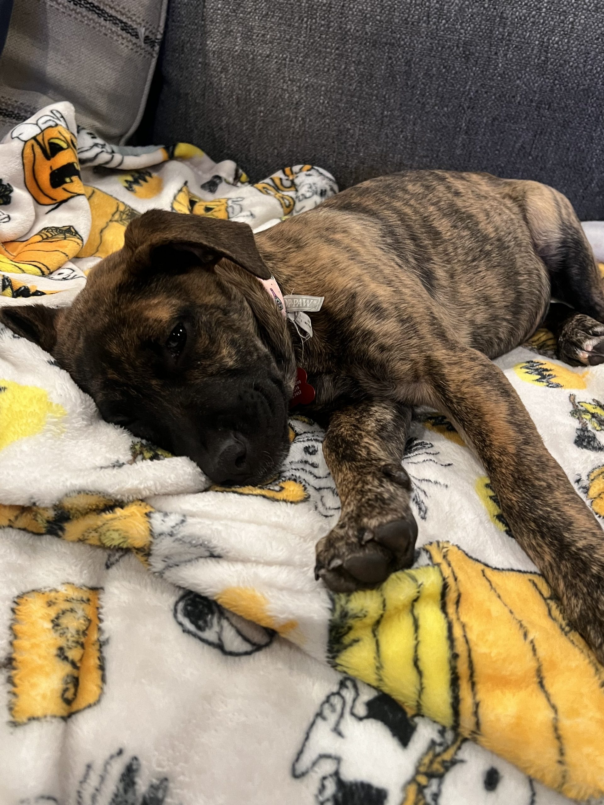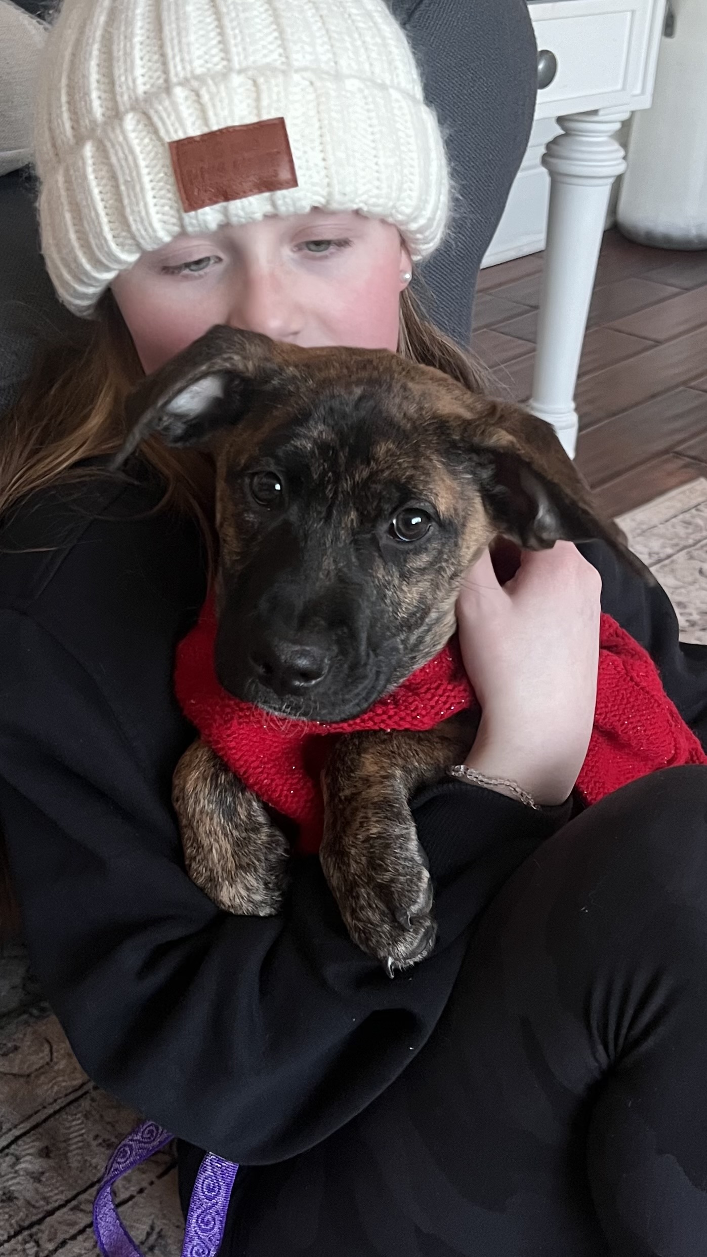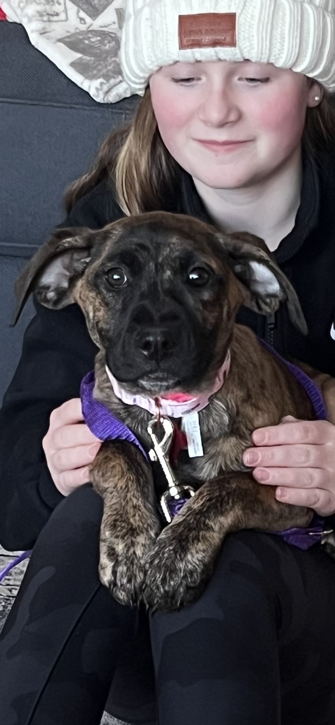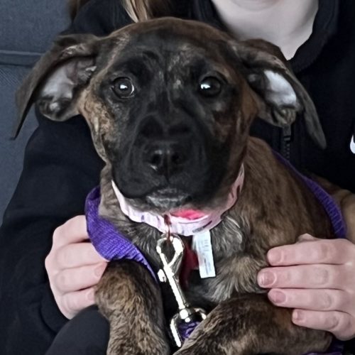 Meet Vagaluna! This sweet 13 week old puppy is looking for her forever home. Vagaluna is advanced for her age with house training. When kept on schedule, she is doing all her business outside at her current foster home. She also sleeps quietly overnight in her crate. Vagaluna adores other dogs and loves to play. She is submissive when first meeting new dogs but then once she is comfortable, she can hold her own playing with much bigger dogs. She has short bursts of puppy energy but overall is not a high energy puppy. Vagaluna also loves to be held and snuggled by the kids in her current foster home. She is an all around amazing puppy that is so smart, loving and a joy to foster. She will make a perfect addition to her forever family.