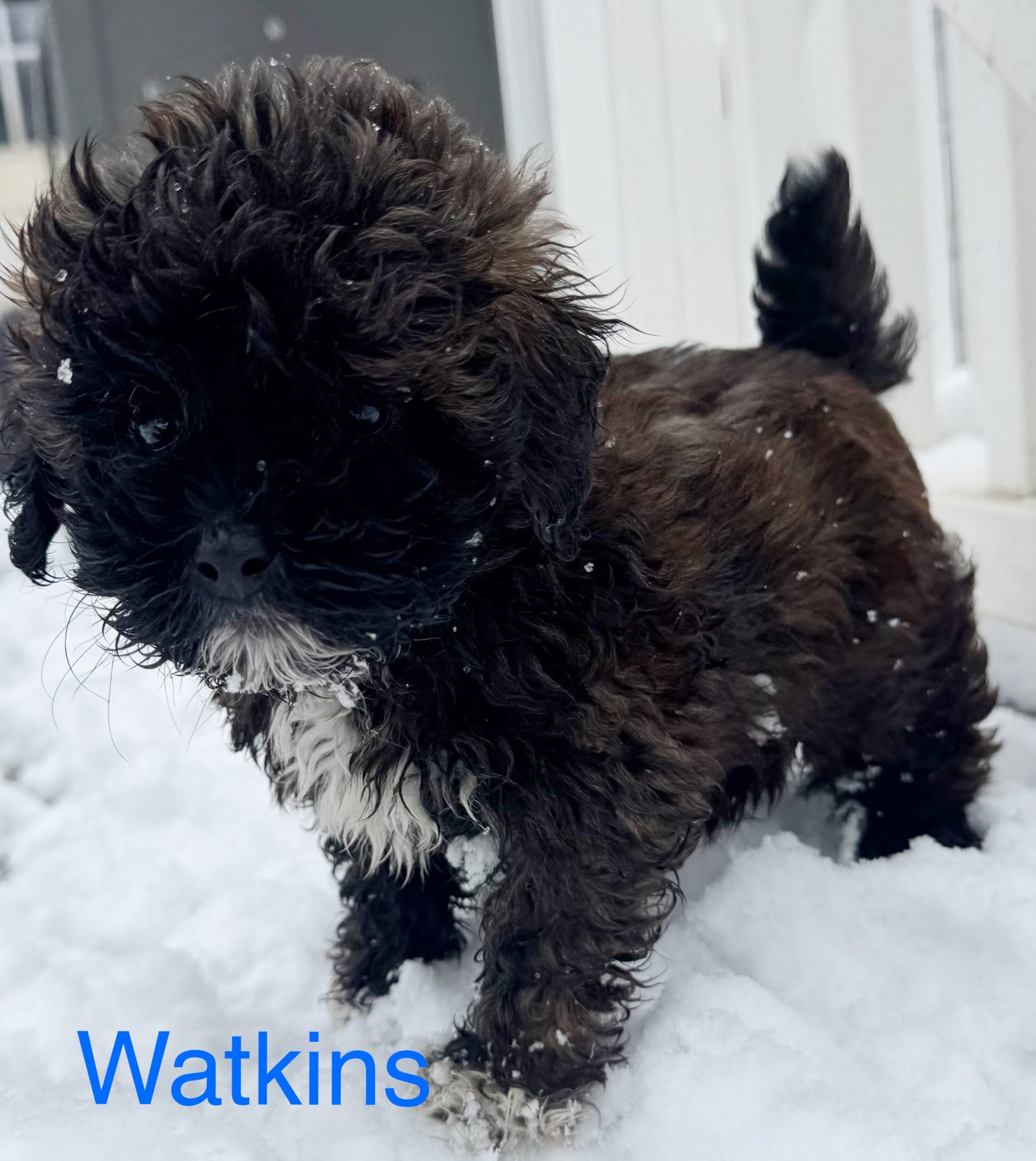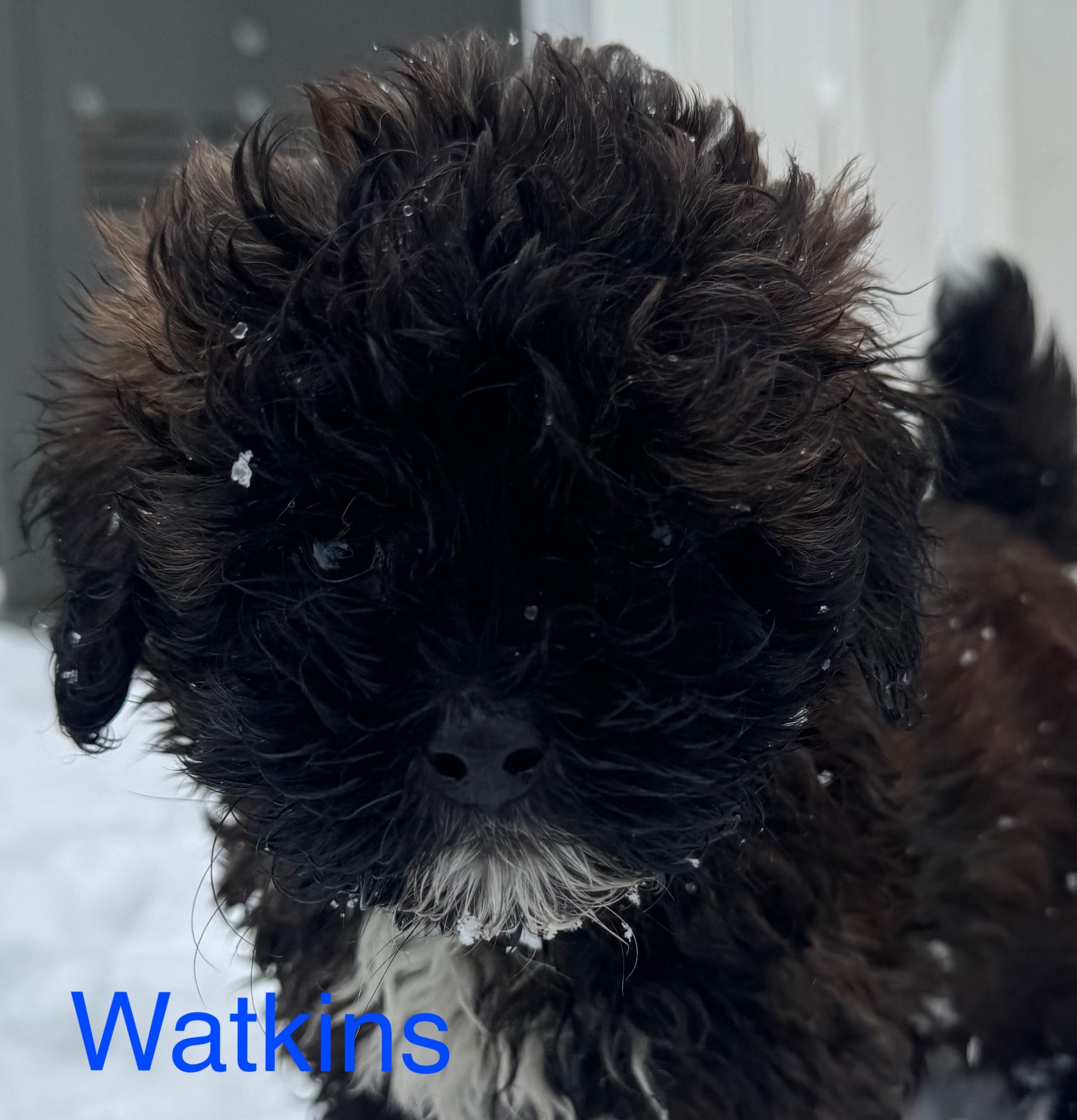 Meet Watkins, a 2.3 lb 8-week-old Maltipoo mix with a personality that lights up any room. This sweet, friendly puppy is not just playful and goofy, but also incredibly smart. He loves to engage in fun games and is always ready for a cuddle session after a good play. Watkins's intelligence makes him a quick learner, eager to please and easy to train. Bringing Watkins into your home means embracing endless joy and companionship. He's the perfect addition to any family looking for a loving and lively furry friend.