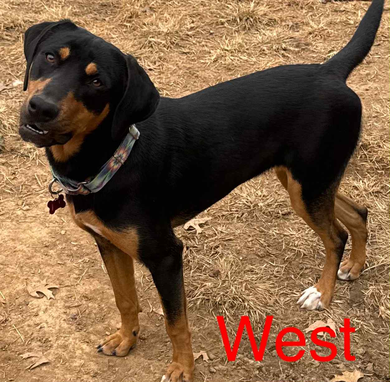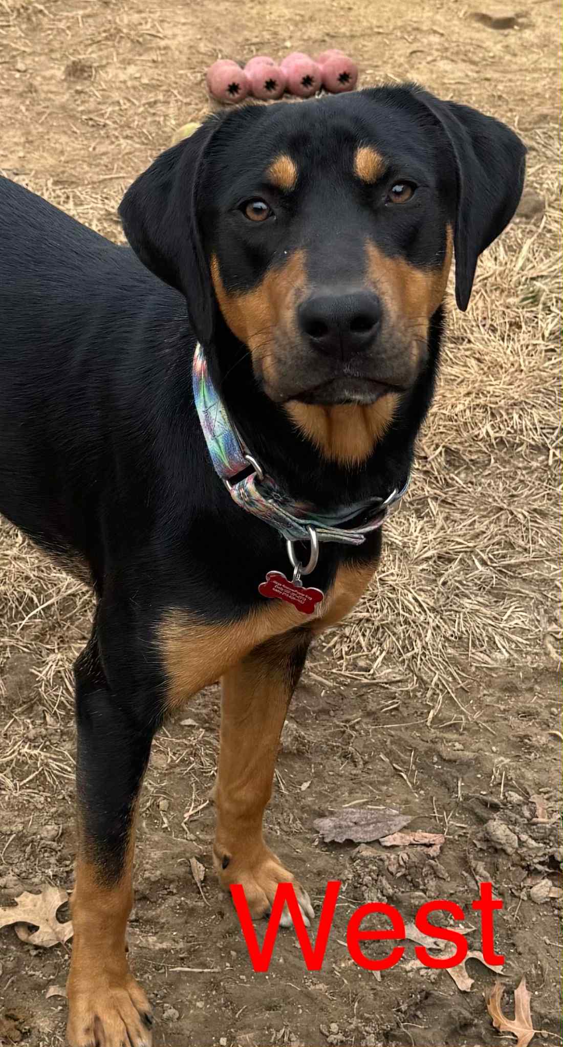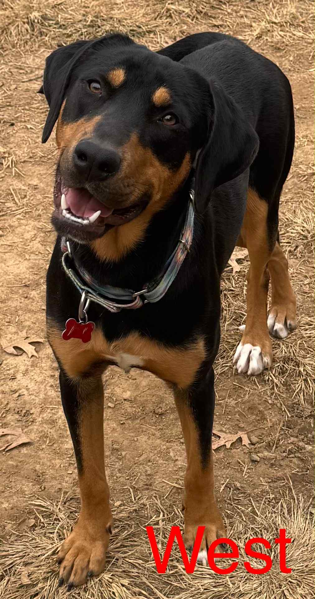 West is a 1-year-old, 40lb Lab mix who’s sweeter than honey and full of love. She adores running around the backyard with her sister, showing off her playful side, and is always ready for a fun adventure.