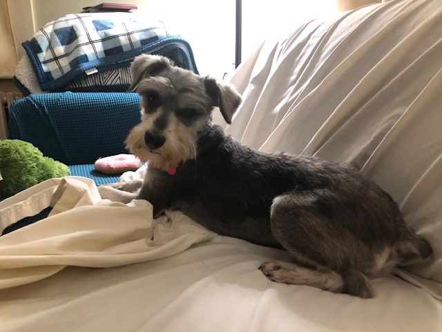 Winnie is an approximately 2 year old miniature schnauzer rescued from a backyard breeder/hoarding situation in GA.