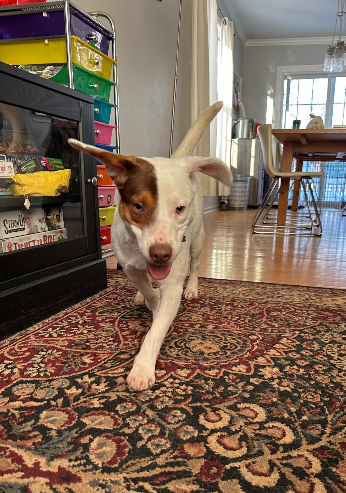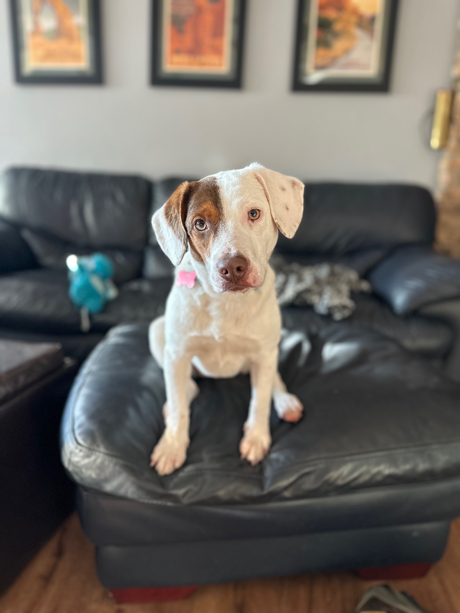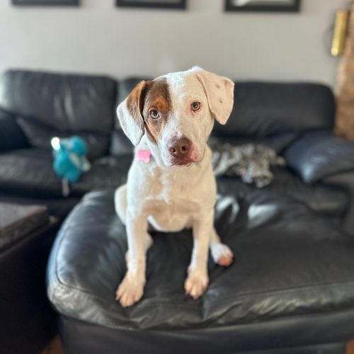 Meet Wren! Wren is a 7 month old, 29 lb bundle of energy in a compact package. In the yard, Wren enjoys running up a storm. She's always up for a game of fetch either outside or inside. Squeaky toys are her favorite! If you don't throw her a toy, she's will throw it into the air for herself. Once her energy has been spent, Wren is content to nap on the couch or chew on her Nylabone. While she is good in her crate and will sleep the whole night there, Wren prefers to be with you and will follow you around the house waiting patiently for attention. She's very smart and treat-motivated. Plus, she is housetrained in her foster home! Wren is also great with children and gets along with other dogs. She's ready to find her family, so apply now to make her yours!