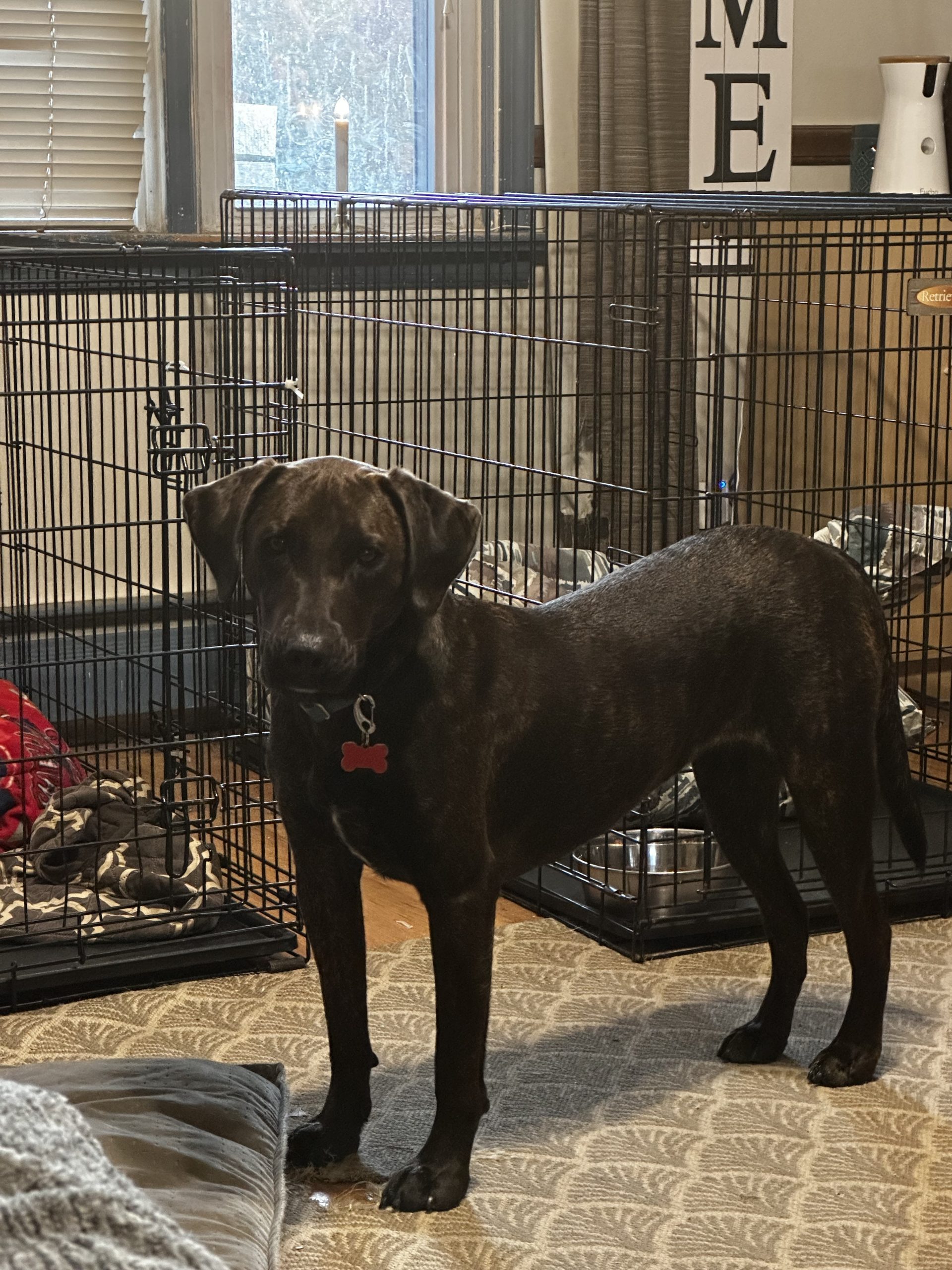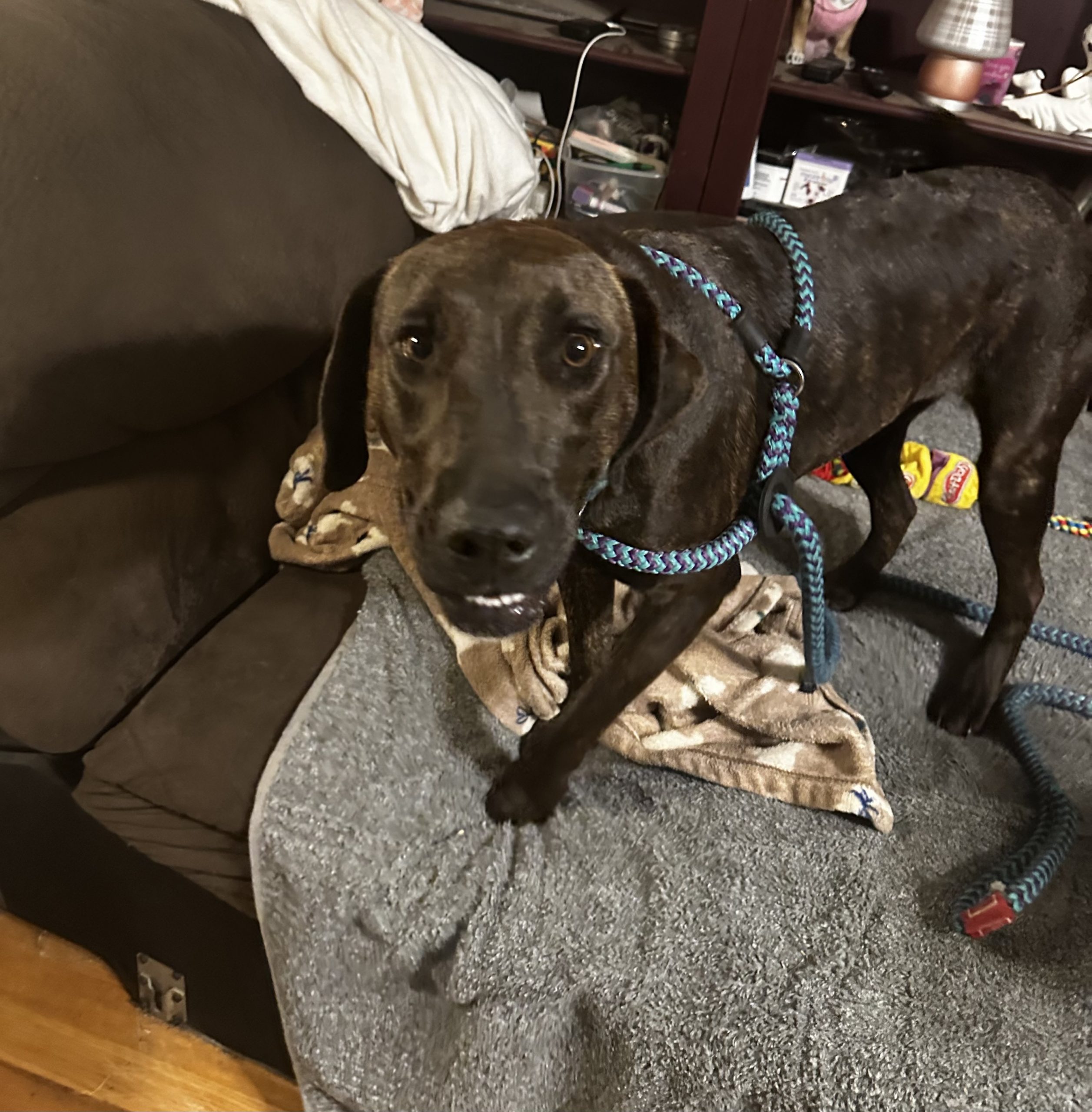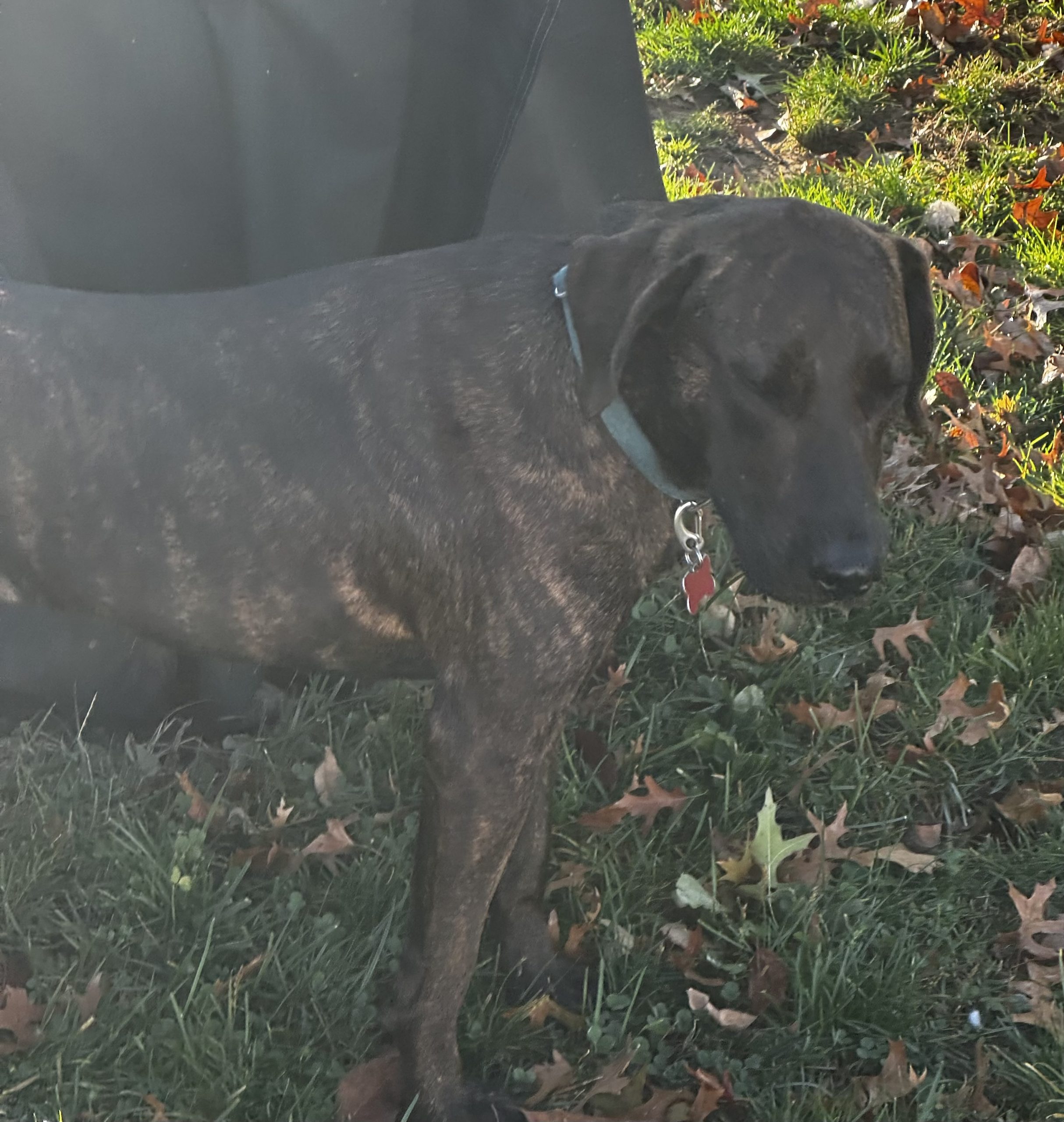 Brindle beauty Zippy is a 50 lb 18 month old Plott Hound Mix who is looking for a family to love.  While not a full low rider - she’s more of a mid-rider - she is the perfect size to snuggle next to you for pets and won’t take up much space on your couch.  She loves to give kisses as much as she loves to receive butt skritches.